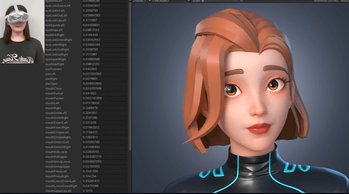 在头盔的内侧,新增了3个特殊的摄像头,用来追踪眼部和面部表情,实时的将你五官表情映射在虚拟形象中,你做什么动作虚拟人就同步跟你一样的表情。
