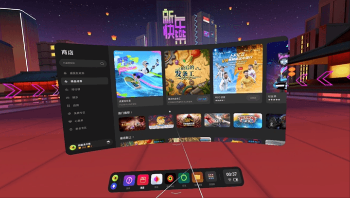 VR观影也算是个拳头功能,看电影讲究的就是巨幕,看现在电视尺寸的增大和投影的普及就知道了,但再大也不及把屏幕放在你眼前,VR就可以完成这样愿望,VR电影的体验无需多说,沉浸感体验都是新颖的。PICO 4 Pro的观影功能支持虚拟电影院,坐在虚拟座位,拥有360°全方位的视角场景,好像真的置身于电影院之中,也可以将电影院换成星空或是纯黑,完全沉浸在电影里。
