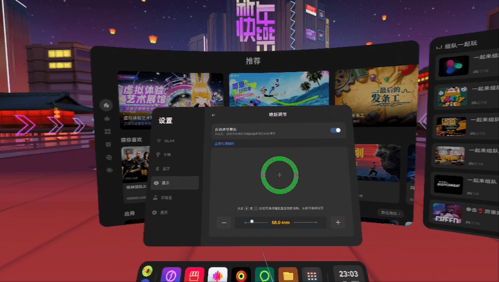 精准,才是智能无级瞳距调节的另一大优势。其实除了智能调节外也是可以和普通VR一样手动调节瞳距,手动调节支持最小浮动是0.5mm,根据自己的视线情况你选择增加或缩小就好,但自己肉眼识别的时候发现在一个区间内好像画面都差不多。而智能无级瞳距调节给出的瞳距是更精准的。