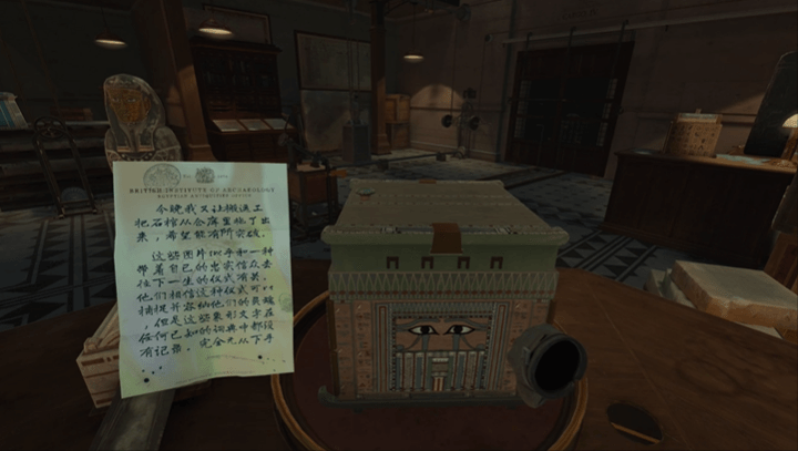 喜欢玩密室逃脱的一定不要错过这款,《迷室VR》是由英国游戏公司Firepoof Games开发,影核独家发行的⼀款剧情向冒险解谜游戏,被誉为全球解谜游戏标杆巨作,囊括全球多项重量级大奖。在游戏中你扮演一名警察,接到一份神秘的委托后在伦敦大英博物馆调查一个考古学家的失踪事件。根据画面的提示和自己的推理进行解谜,每个场景和道具都可以自行尝试, 会触发不同的机关,非常有趣,对于有社交恐惧症的我来说在家就能体验密室逃脱的感觉真是太好了。