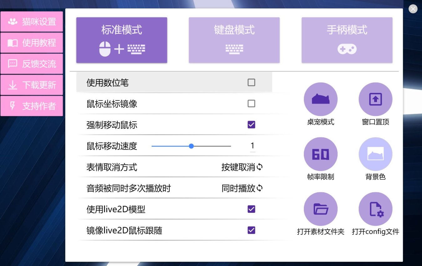 3.當然,作爲如此一款良心的有趣的應用,你甚至可以對鍵盤、鼠標和小貓本體進行完全自定義,怎麼喜歡怎麼來。
