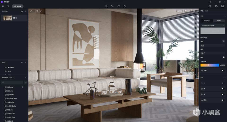 这里我们选择了软件自带的Minimalist Living Room,以及额外下载的Wooden Atrium Space场景进行对比。其中Minimalist Living Room拥有31个模型和4,065,155个表面,以及2个光源。Wooden Atrium Space则更为庞大一些,拥有288个模型,62,204,588个表面和30个光源。