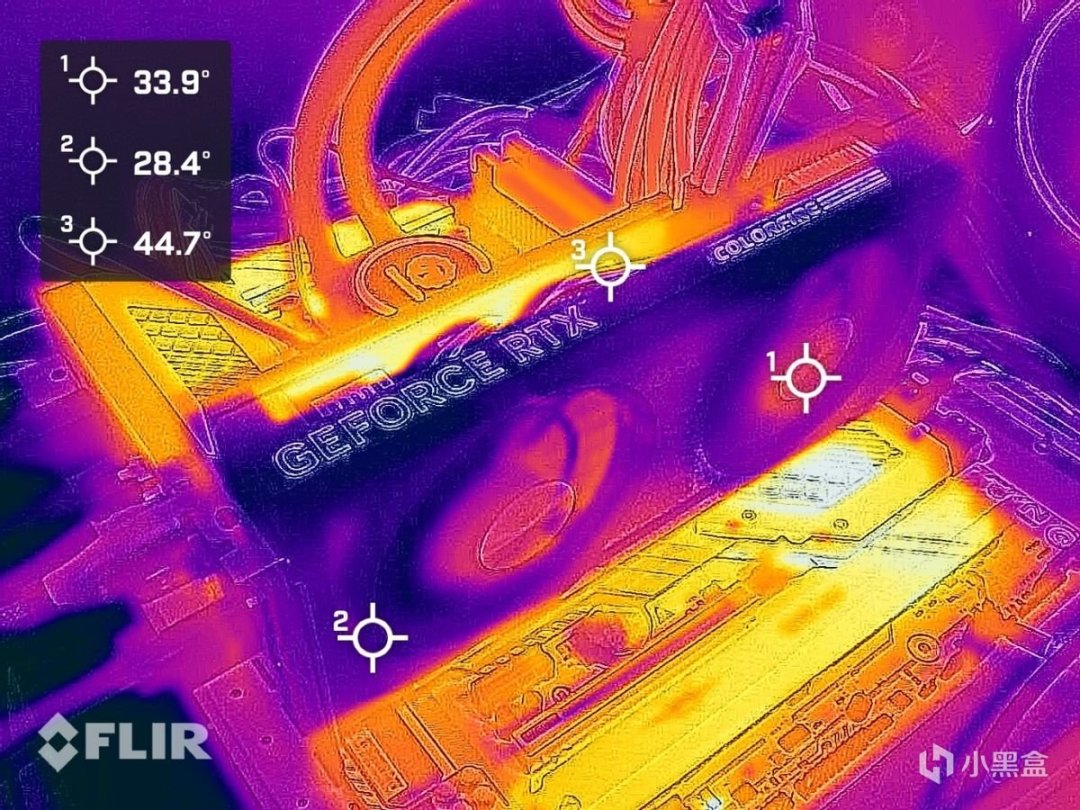 在压力测试中,COLORFIRE GeForce RTX 4060暗影紫8GB的表现也很好的证明了这一点。GPU核心温度最高为66℃,在26℃环境温度下,显卡表面保持凉爽状态,最高温度仅在45℃上下。
