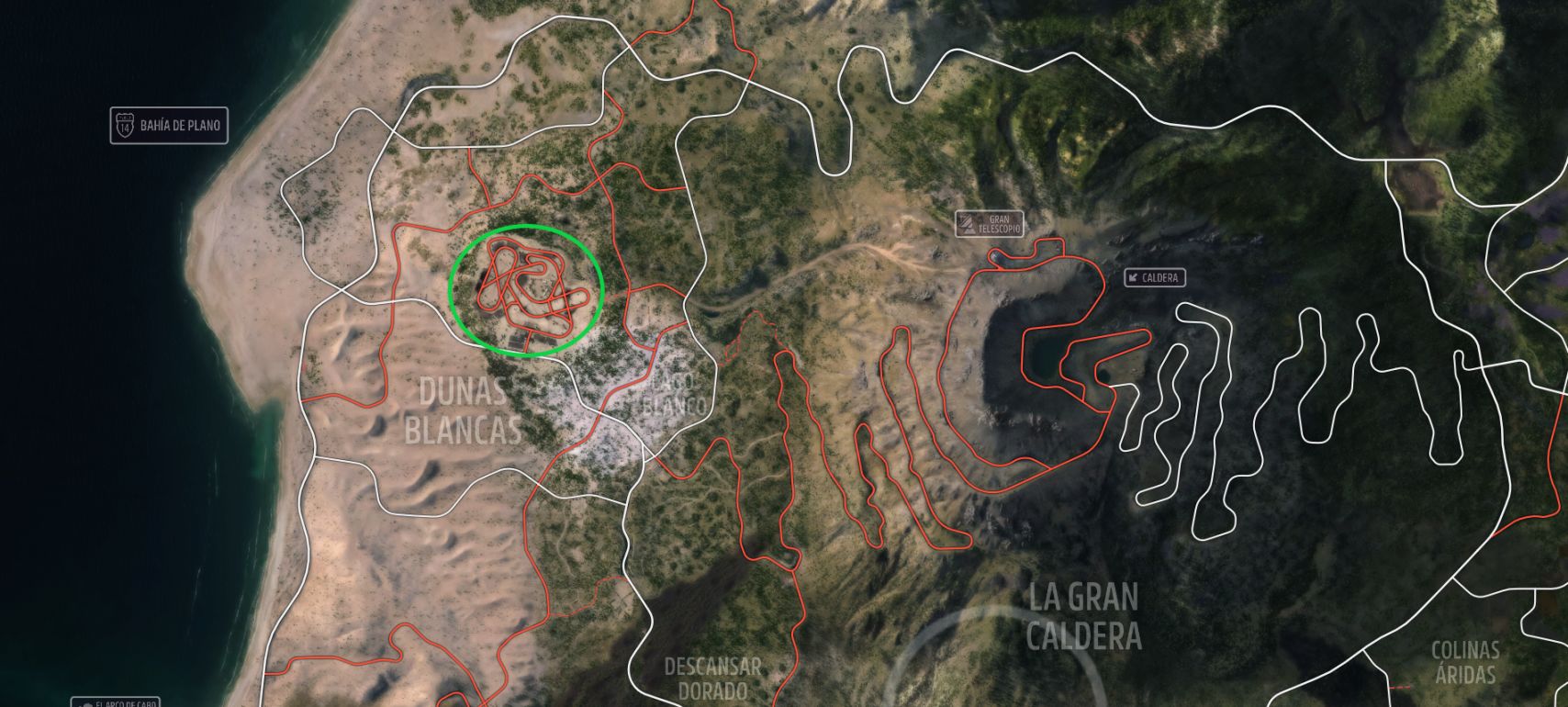 巴哈环道位于地图左上角,参考上图的绿圈内的道路