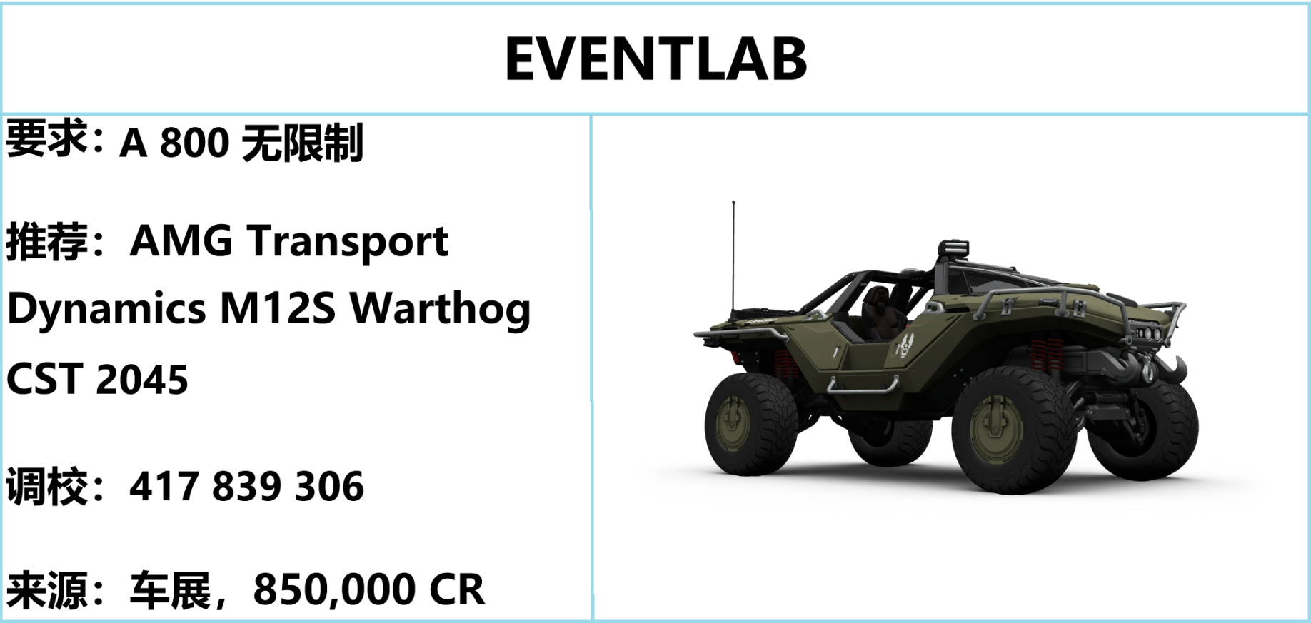 EVENTLAB 是单人体验的蓝图,无难度可言,只需开符合标准的车即可。