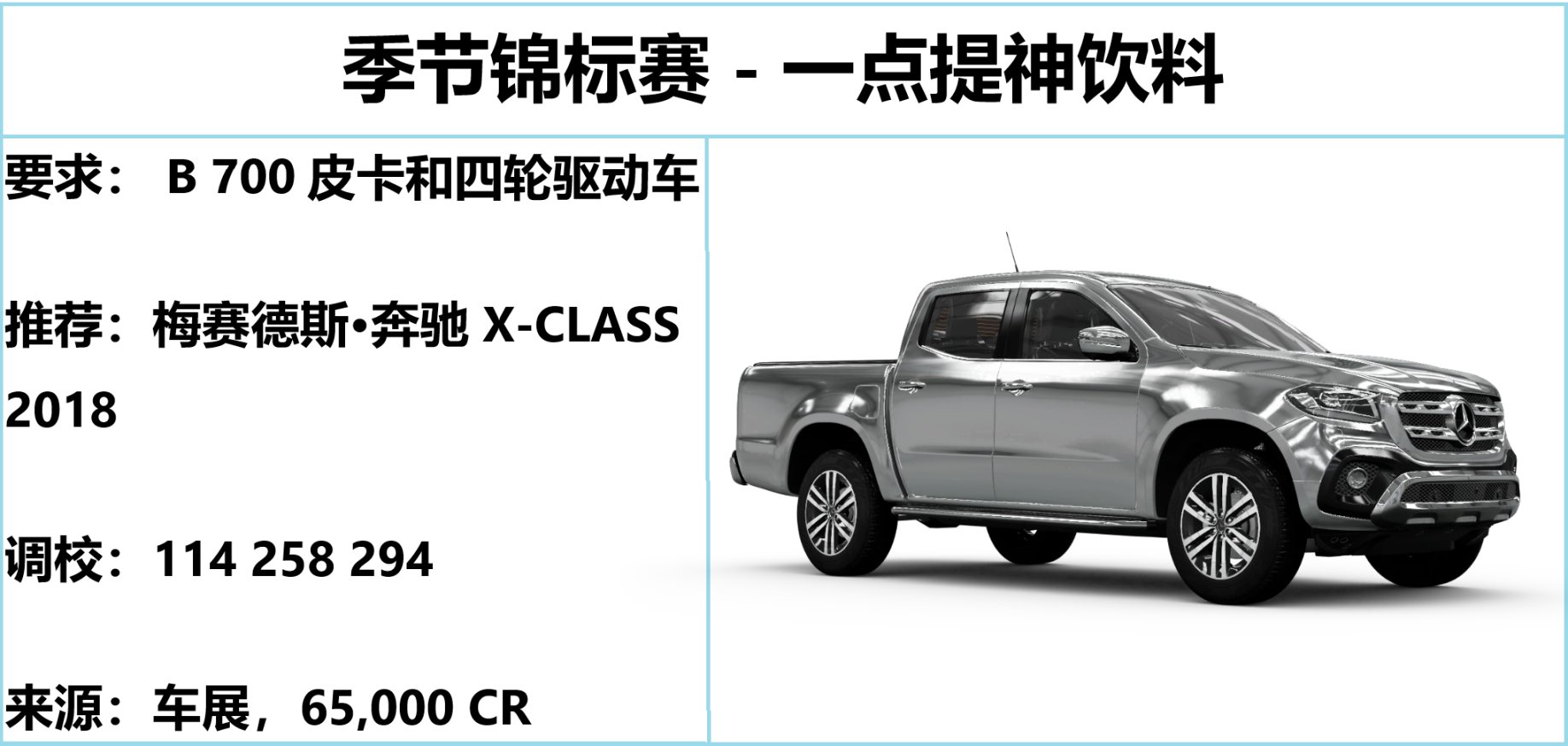 一辆被我改坏的奔驰 X-CLASS 皮卡车,性能弱到只能打 AI ,失去了比赛价值。