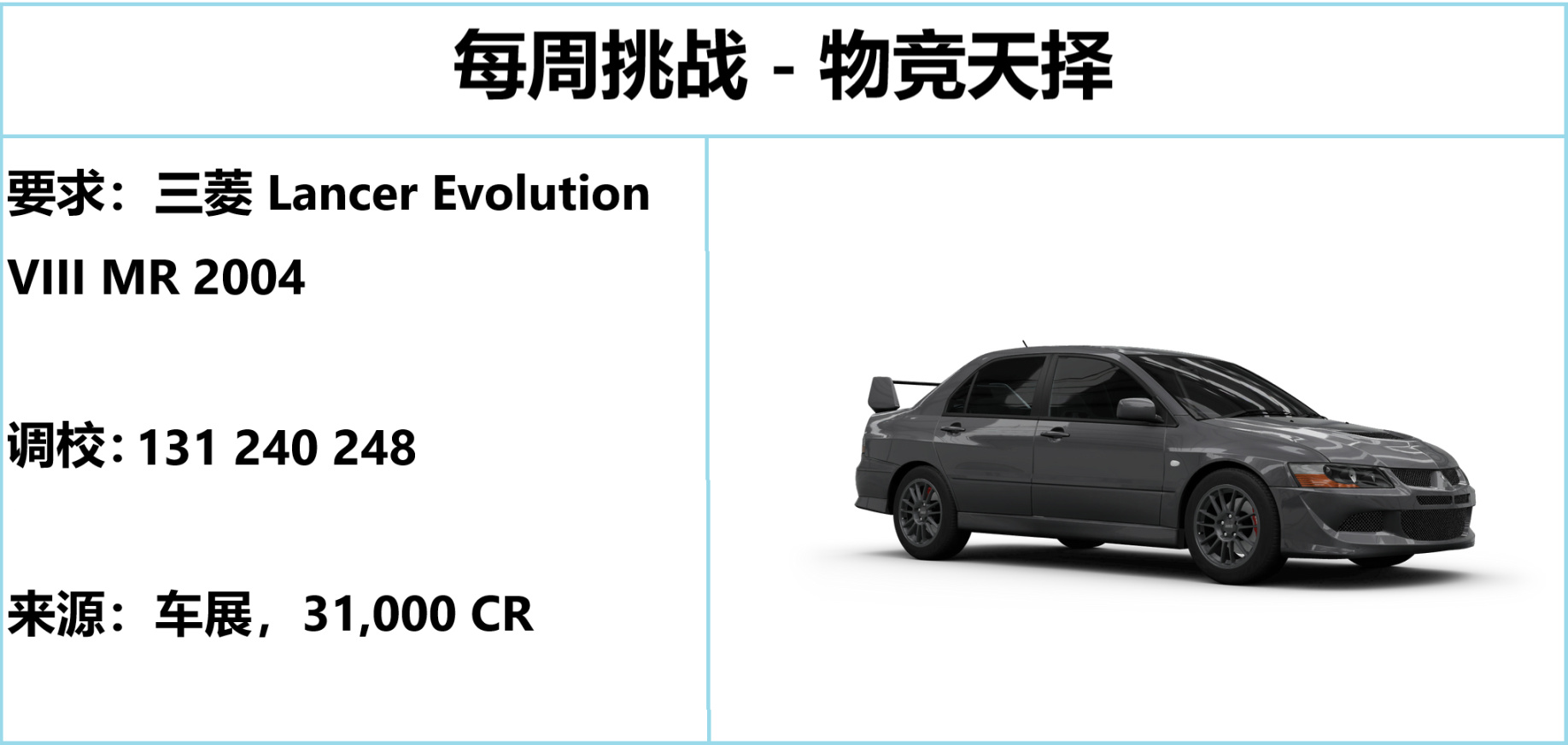 1. 拥有并驾驶 2004 款 三菱 Lancer Evolution VIII MR