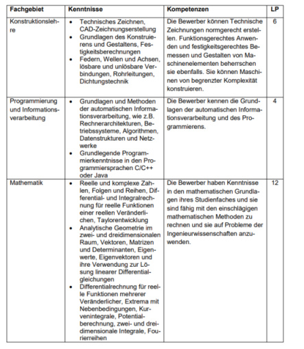 以布倫瑞克工業大學的機械專業爲例,如圖。