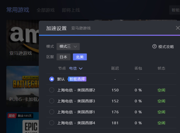 1.使用“小黑盒加速器”,输入文章末尾的免费激活码获得时长,搜索亚马逊,选择北美节点加速: