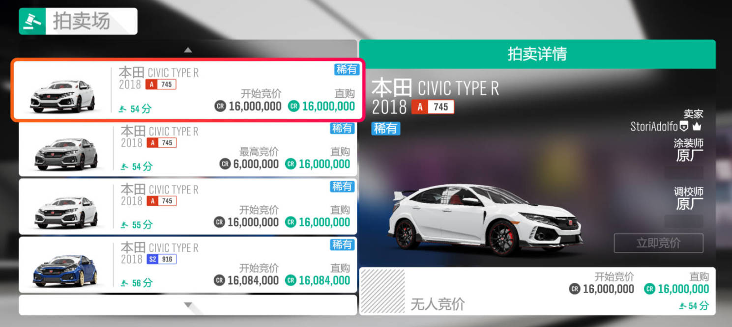 夏季賽進度獎勵爲50%完成2018款本田 CIVIC TYPE R和80%完成2018款KTM X-BOW GT4