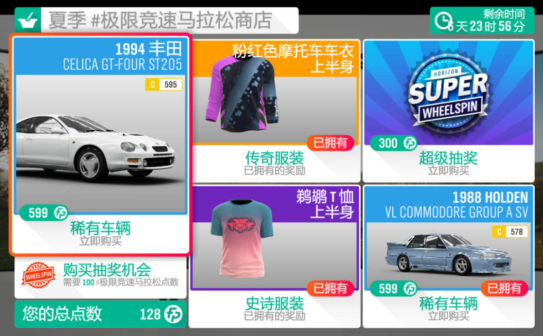 本週更新車輛爲1994款豐田 CELICA GT-FOUR ST205和1988款HOLDEN VL COMMODORE GROUP A SV。兩輛車都是地平線後臺車,沒有的可以兌換