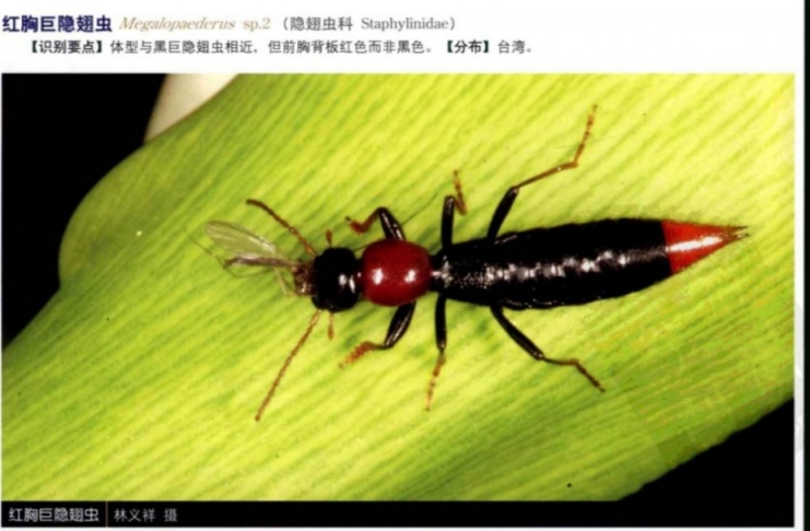 跟毒隱翅蟲長的很像,不過鞘翅不是紅色是黑色,體型也要比毒隱翅大。總之不管有沒有毒,看到這種紅黑配色的就要小心處理一下