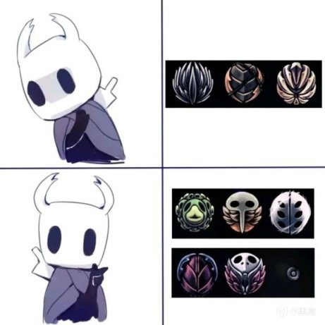 可以说虽然HK的战斗显得十分简约,但是护符毫无疑问地扩充了它的深度,它在一定程度上为玩家提供了更便利的乐趣,又给乐意压伤的玩家提供一些策略的思路,哪怕是在速通的流程中,护符的取舍也能造成路线的迭代。这便是护符系统在HK中的绝笔。