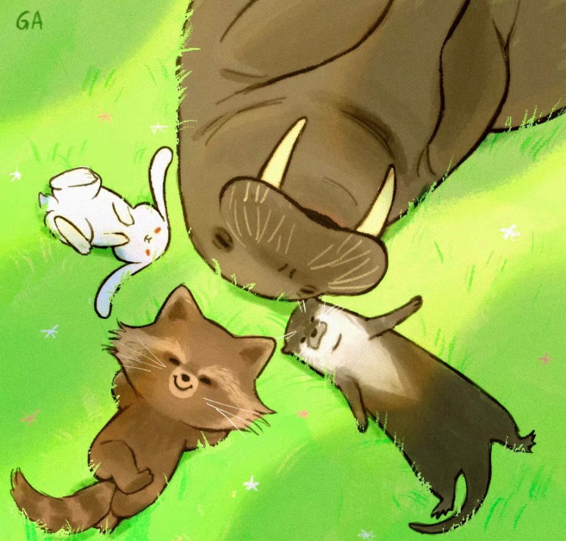 在另一个平行宇宙中,火箭和莱拉,大牙,大板一定开心地生活着!!