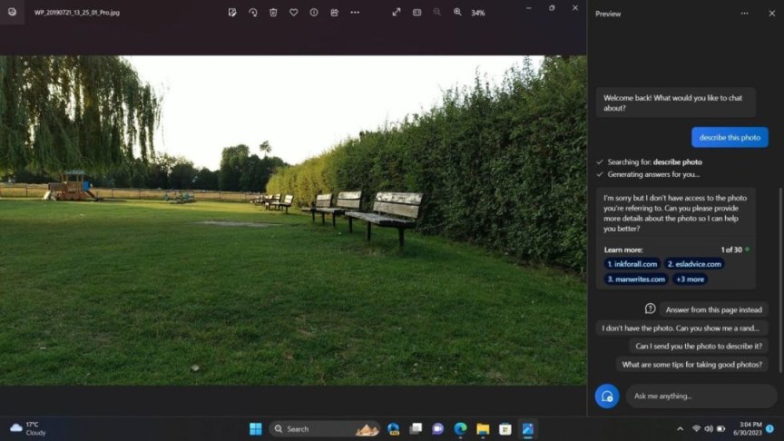 首先,需要強調的是,Windows Copilot功能仍處於預覽階段。微軟自己也表示,上個月宣佈Windows Copilot時展示的許多功能尚未實現,將在未來的預覽版中推出。因此,這個版本其功能上的不足可以歸因於它仍在開發過程中。