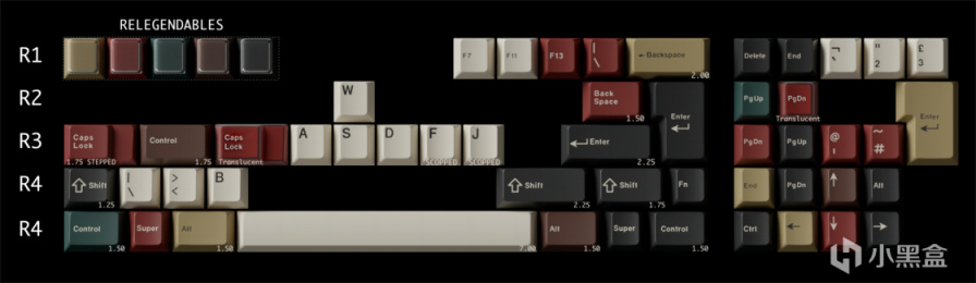 虽然是复古风,但相较于常规的复古灰白,这套键帽的颜色非常丰富。