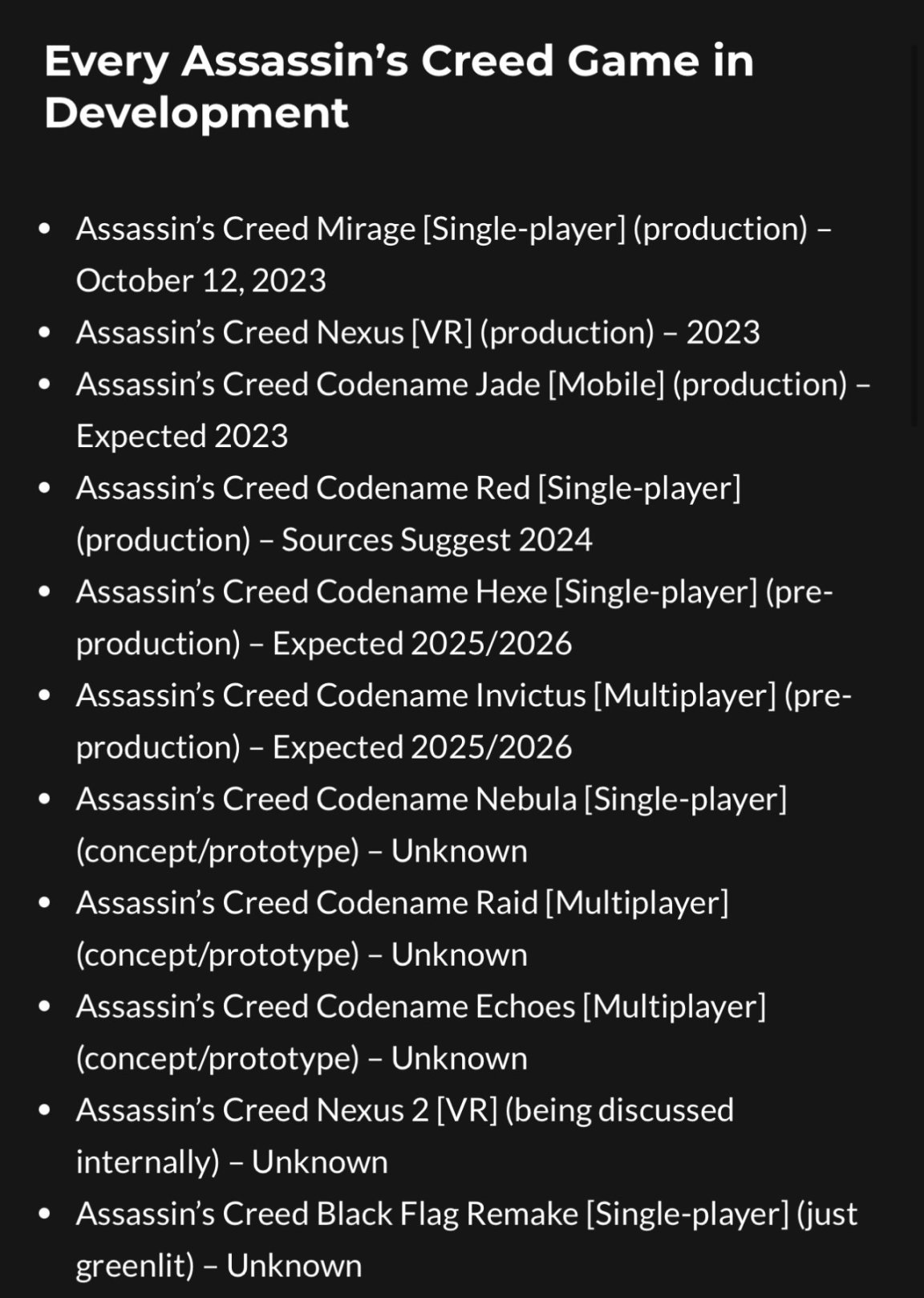 4. 刺客信条:代号 “红” 单机,制作中,爆料来源声称24年发售