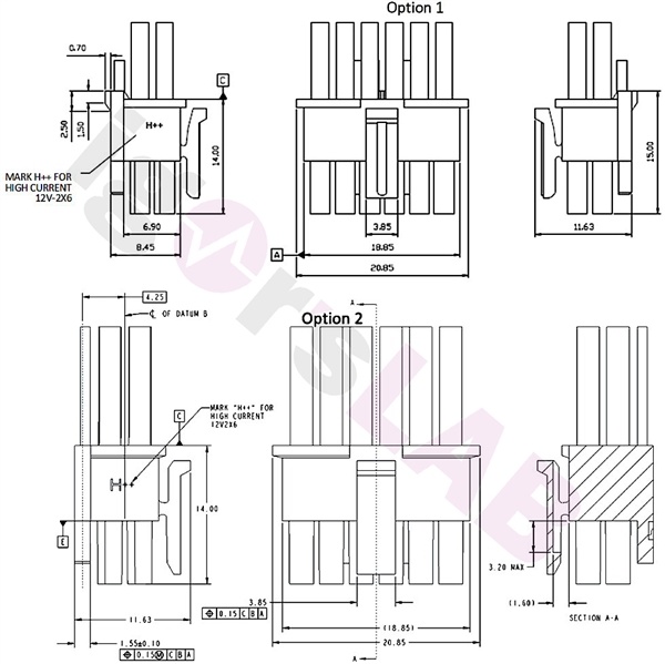 每個針腳的最大供電電流還是9.2A,但是分成了H+、H++兩個級別。