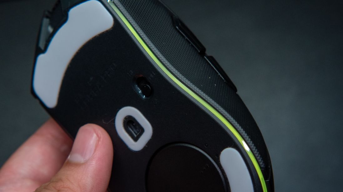 底壳上可以看到三颗定位磁铁,用来和雷蛇的无线充电底座磁吸配对。