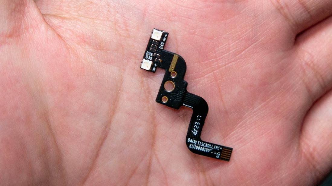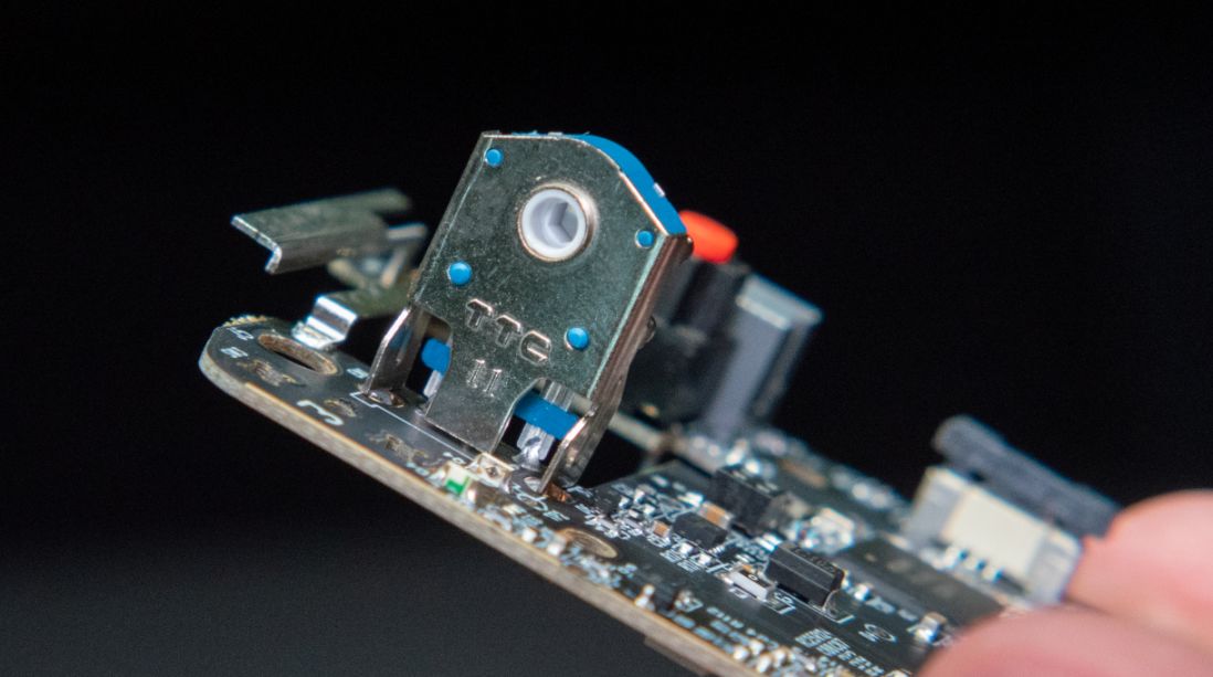 滚轮灯通过螺丝固定在支架上,由两颗RGB灯珠组成,滚轮内部则做了挖空减重处理,能看到明显的润滑痕迹。
