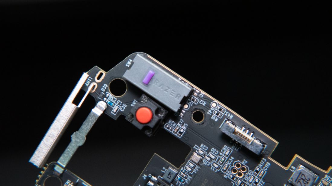 无线IC则是旗舰鼠标标配的Nrf52840,内部搭载雷蛇hypexSpeed 低延迟无线协议,最高能低至1ms以下延迟,这次还支持了蓝牙连接,可以在三个蓝牙设备之间快速切换。还有一枚3746A电源管理IC。