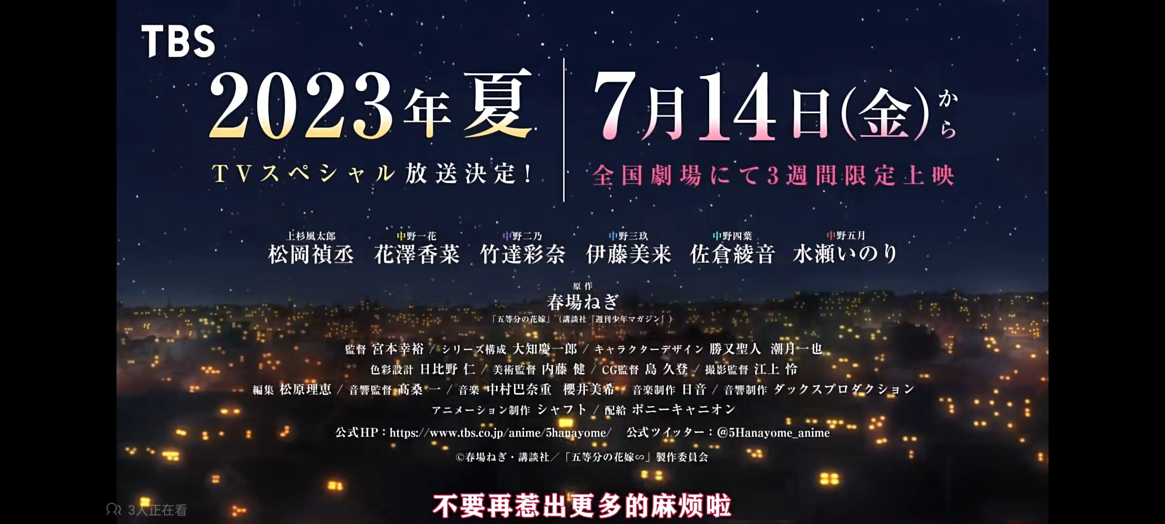 五等分的花嫁特別版是漫畫之前未動畫的內容補充,PV裏面全是動畫刪掉的漫畫內容,發生在劇場版時間線之前的,被單獨拿出來做特別篇了
