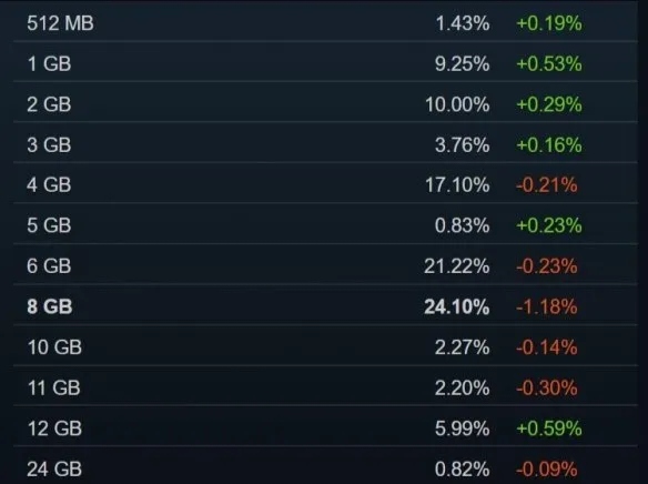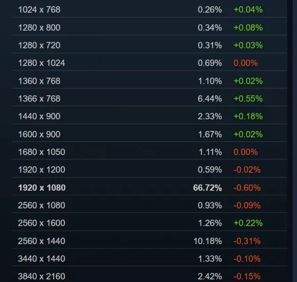大多少玩家使用的是1920 x 1080,使用率为66.72%,其次是2560 x 1440(俗称2K),使用率10.18%;仅有2.42%的用户使用4K屏幕(3840 x 2160)。