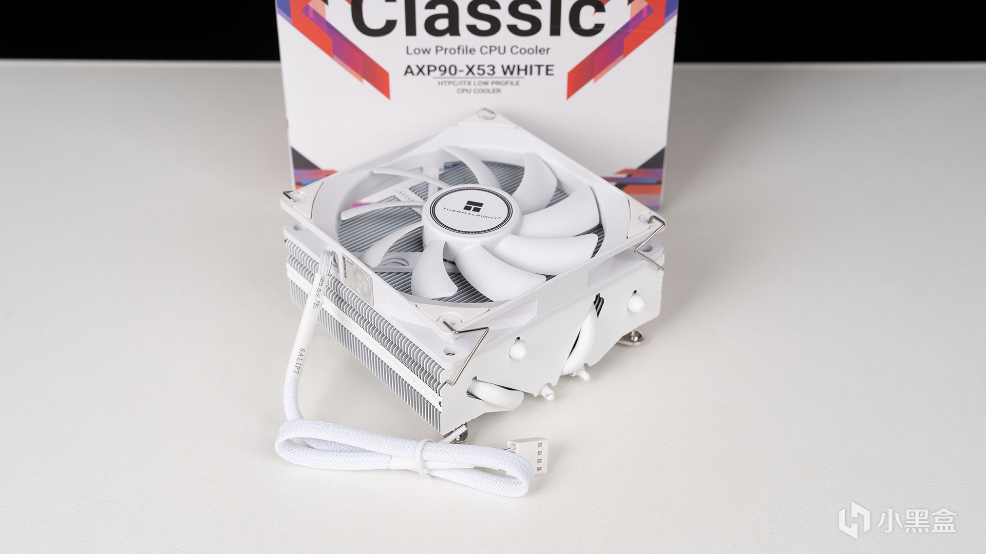 AXP90-X53 WHITE白色喷漆工艺看起来挺精致的,搭载了一枚TL-9015W规格风扇,最高转速可达到2700RPM±10%,散热器高度控制在53mm能适配大部分ITX主机。