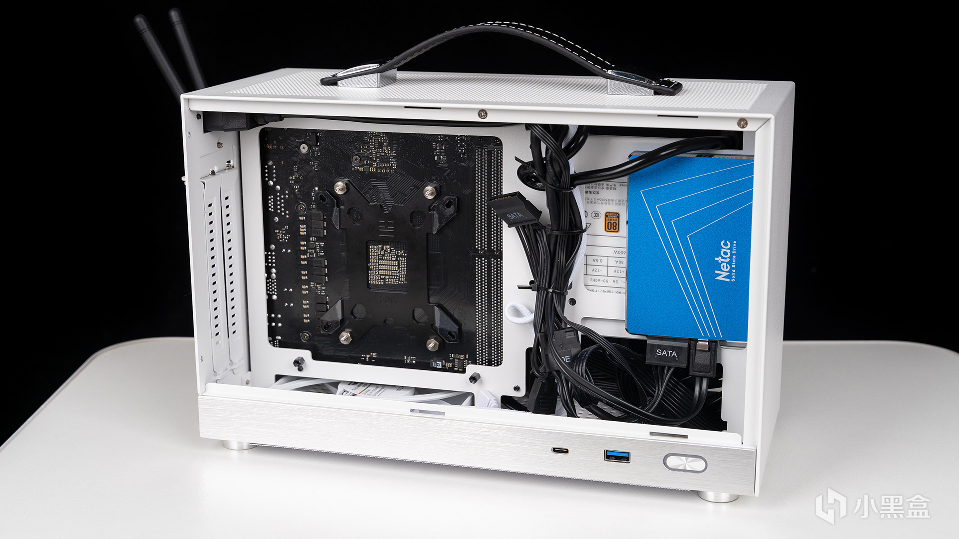 独显安装区域也可以容纳一个3.5英寸机械硬盘,不过这种组合会把显卡限制在180mm,硬核这次仅安装一个2.5英寸SSD,也不会影响后续升级独显。