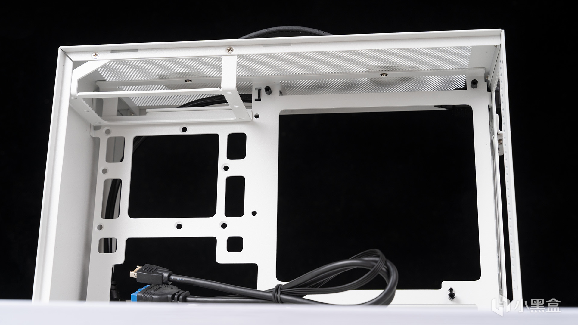 机箱另一面对应主板、电源布局,而且是下压式散热器方案,显然MESH网板是最合适的。