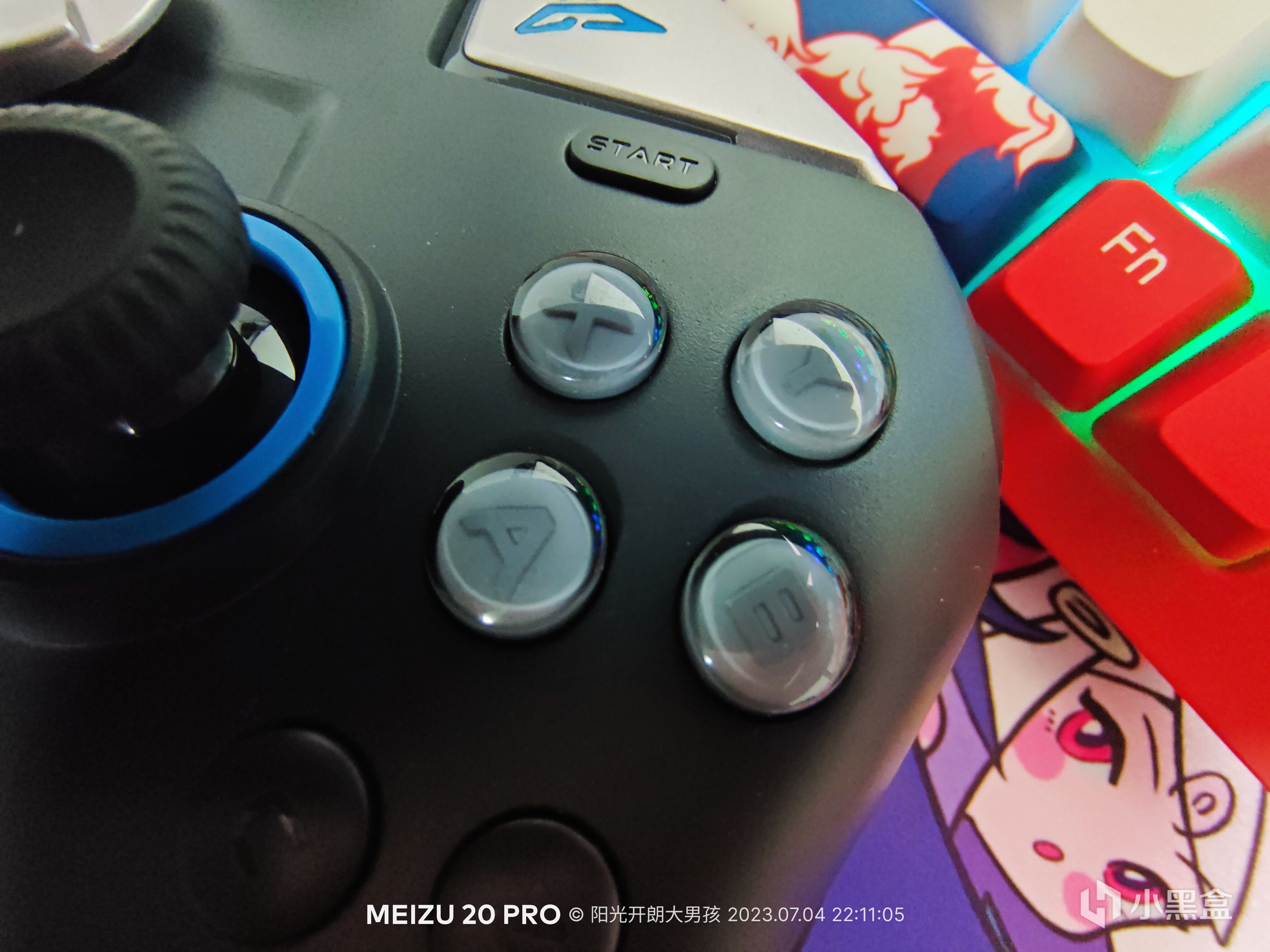 值得一提的是飛智黑武士3的機械按鍵得益於獨特的設計,按鍵手感十分微妙。不同於PSV那樣梆硬,也不同於joy-con那樣“鼠標”,它在微動上加了一層墊膠,於是在有着微動超輕觸發力度、超快觸發速度的清脆手感同時,也多了一層牛蹄筋般軟彈的質感。我實在不知道該如何把這種奇妙手感付諸語言文字,只能說它的手感非常令我上癮,遠勝一切“解壓小玩具”,我閒着沒事就想按一按。