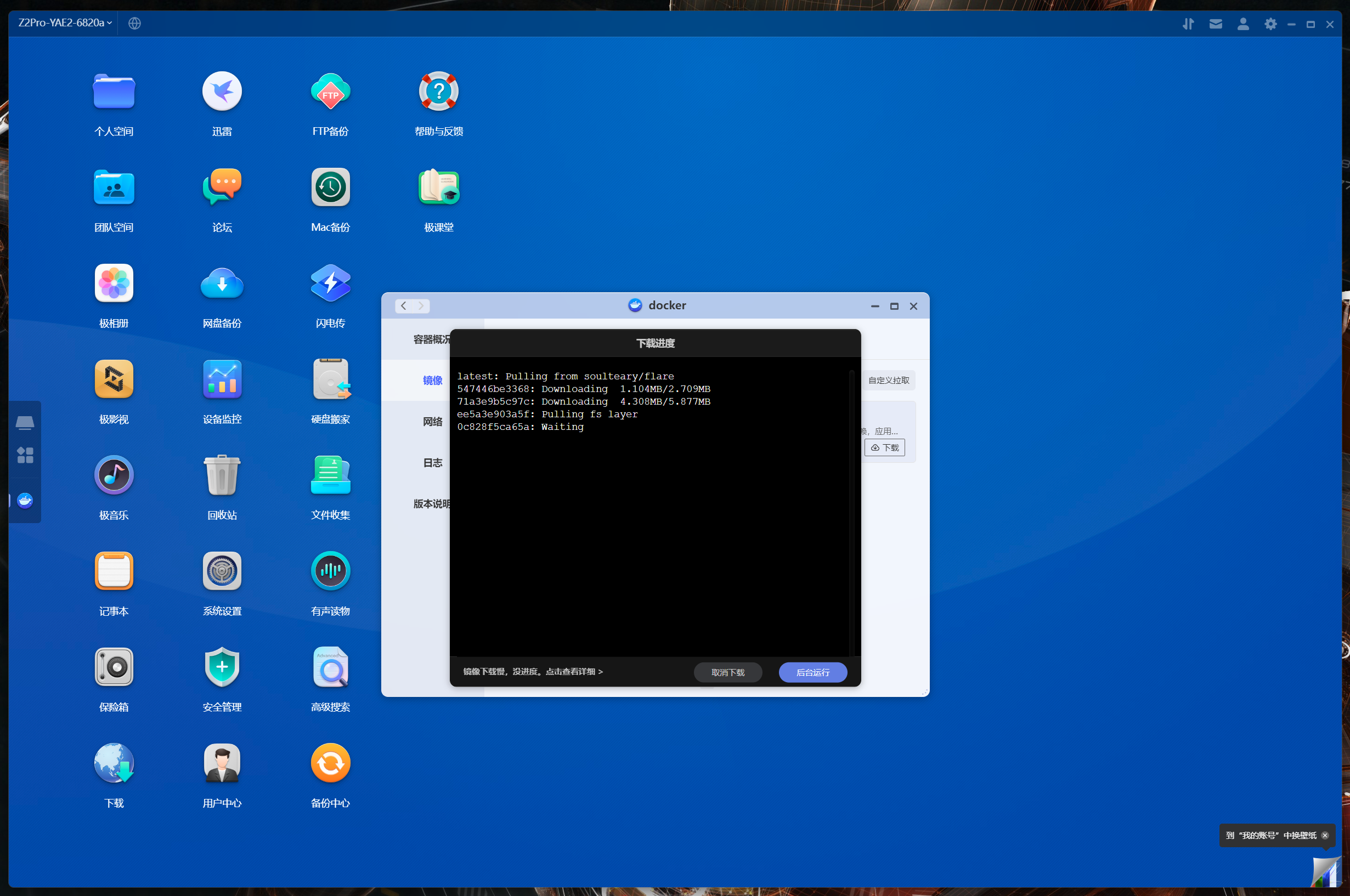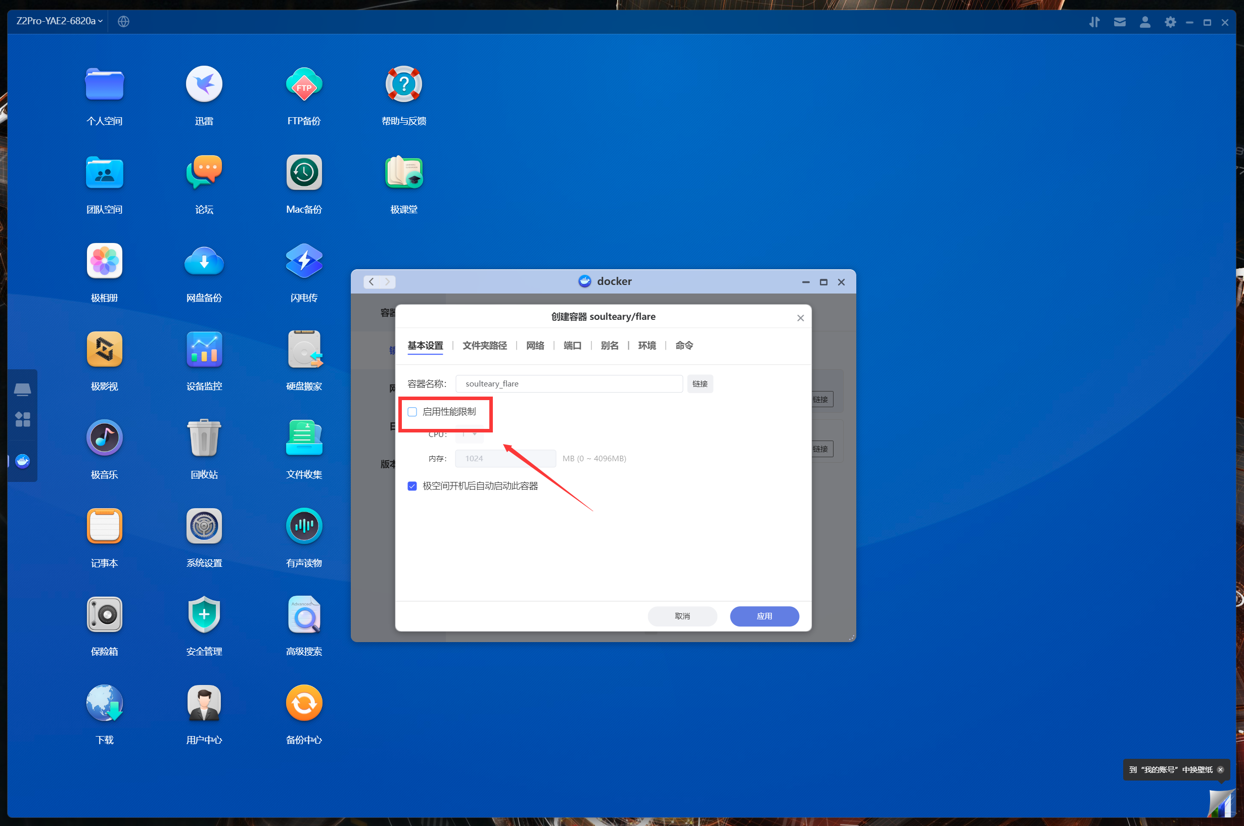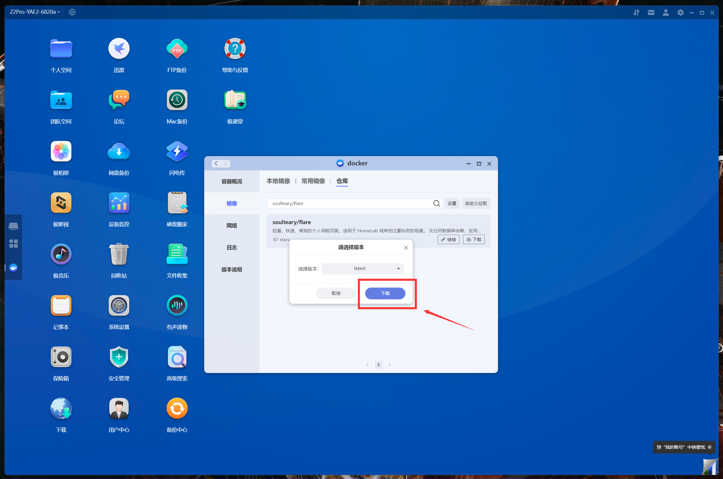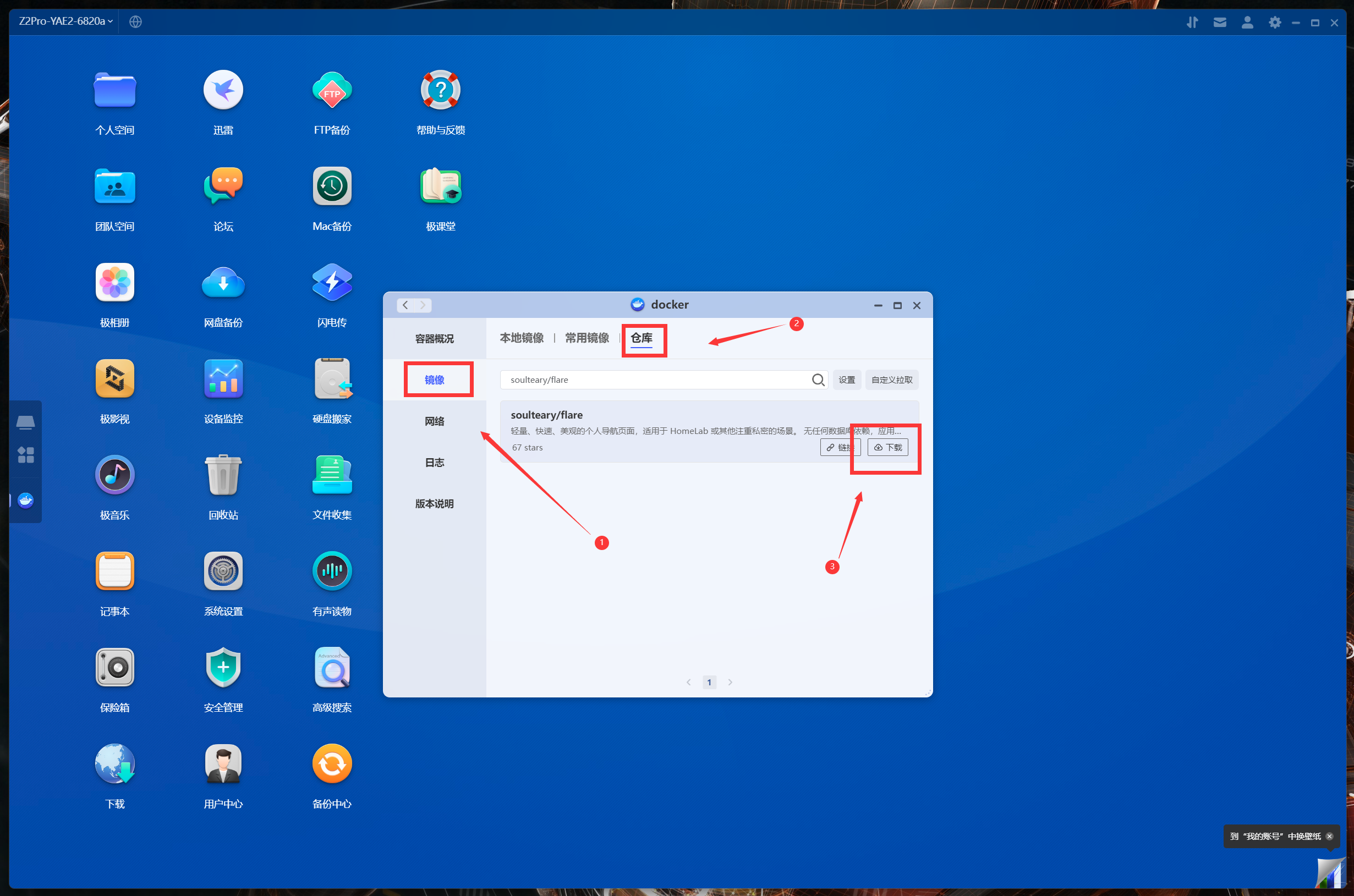 下面以比較流行的NAS導航頁項目Flare爲例,給大家分享一下極空間Z2Pro的容器部署教程。