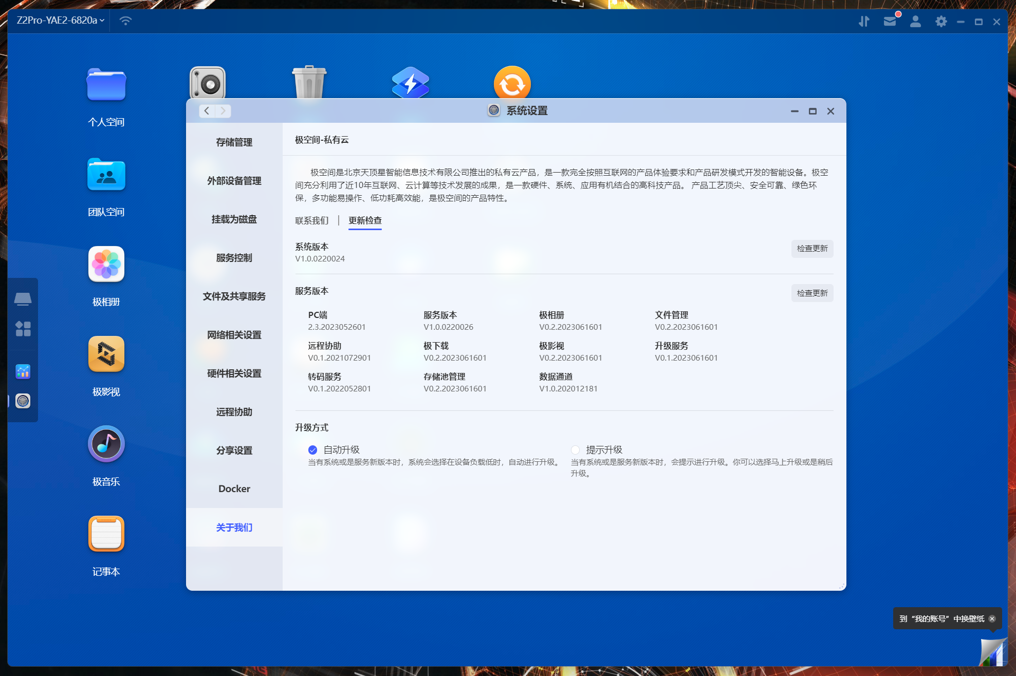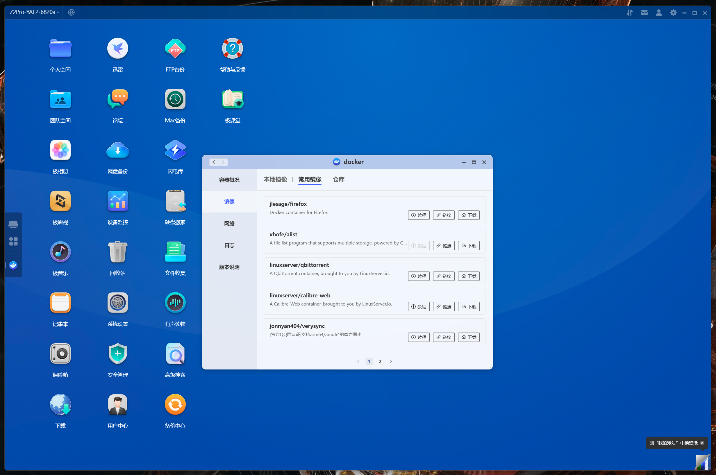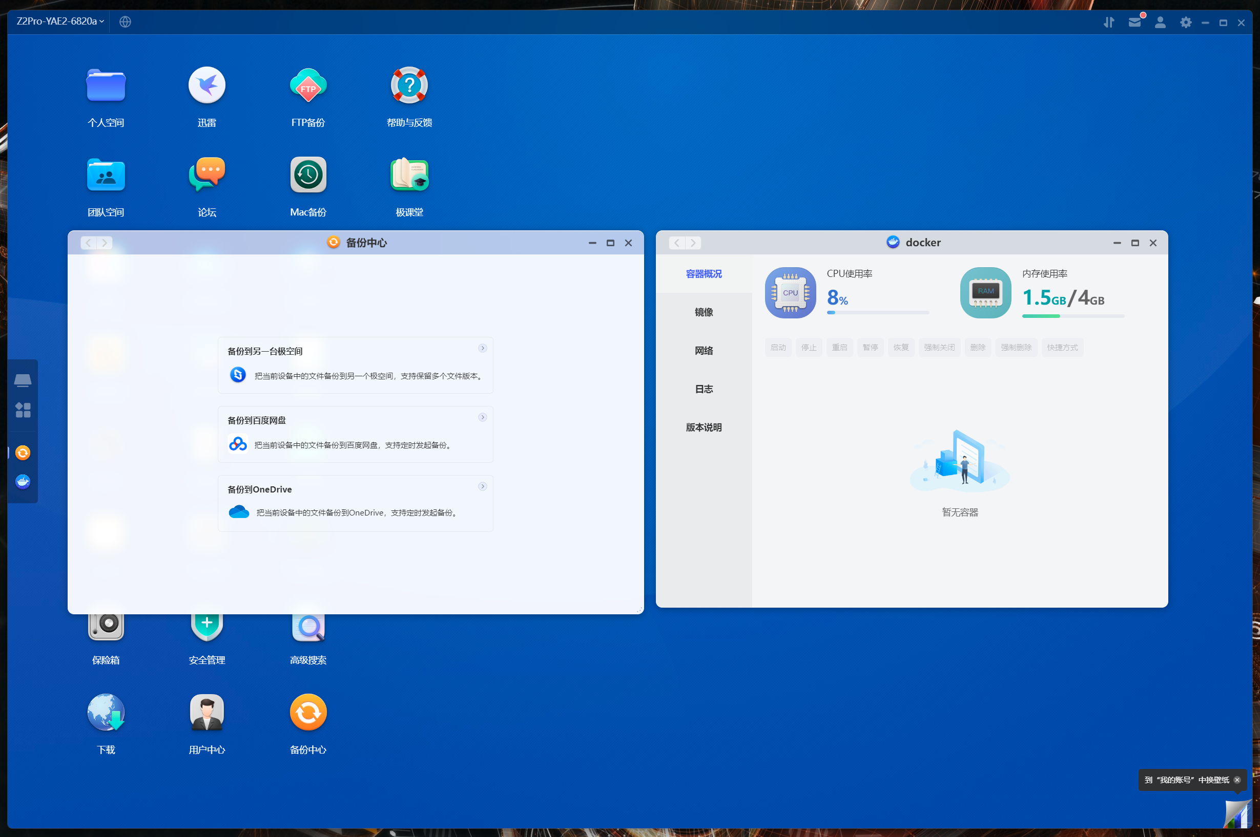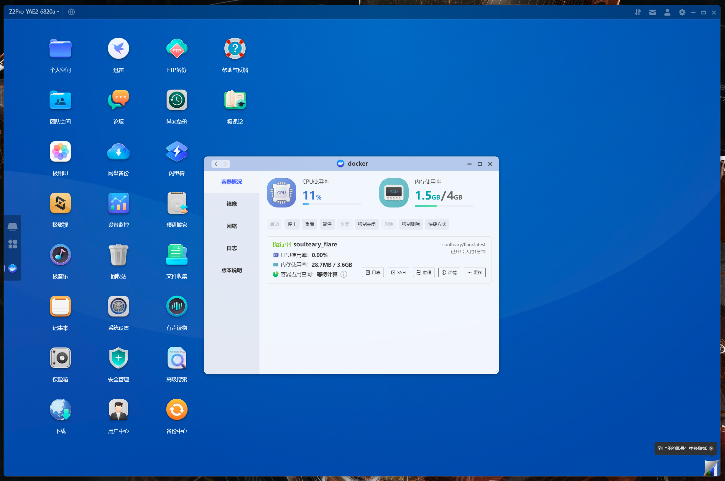 極空間Z2Pro系統依舊是自研的ZOS操作系統,雖然和Z4系列的X86系統同名,實際上整個Chain是完全不同的,相比之前也多了不少針對大陸用戶的本地化套件,由於沒對用戶開放SSH權限所以下文只能展示前端。