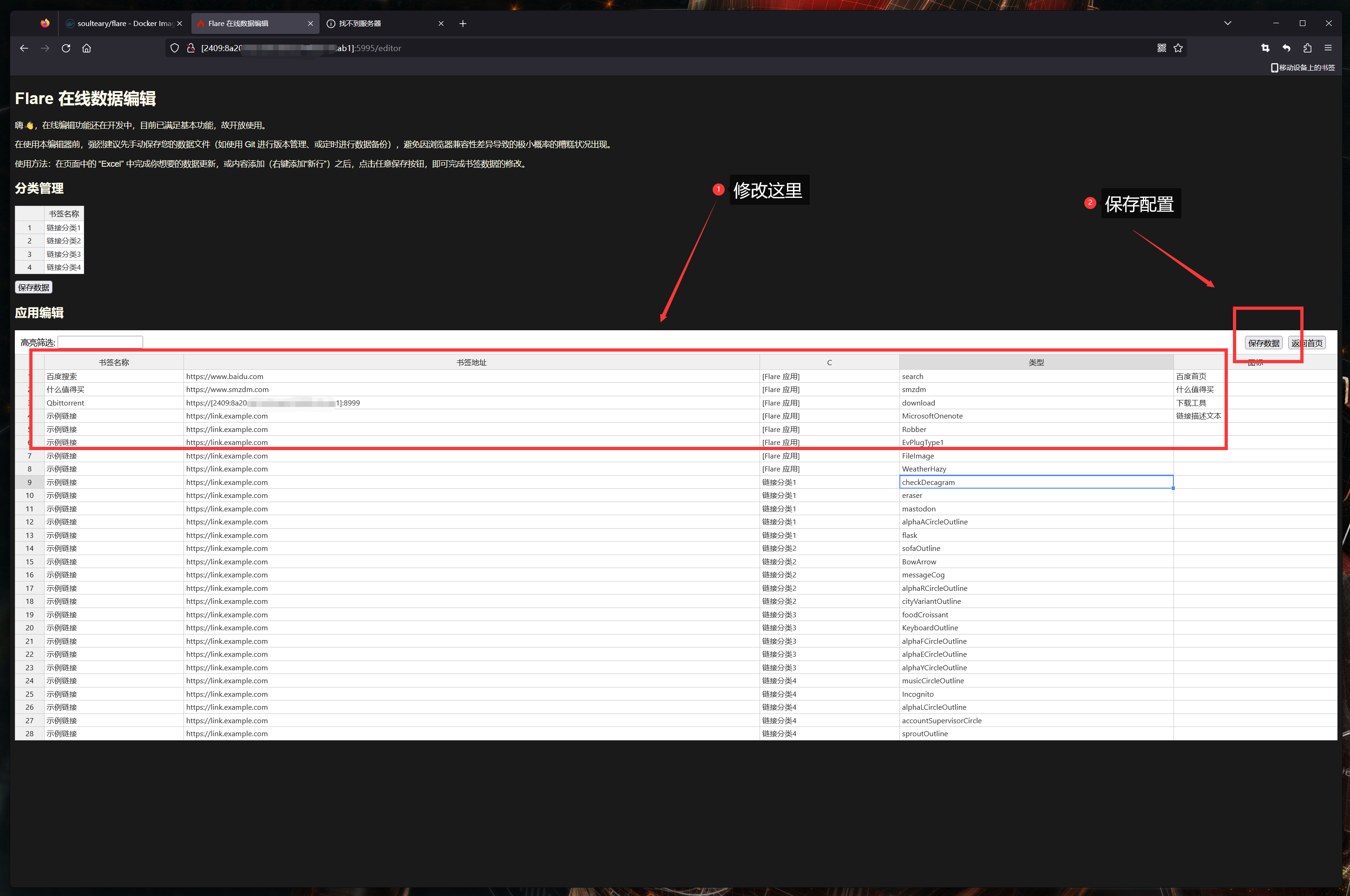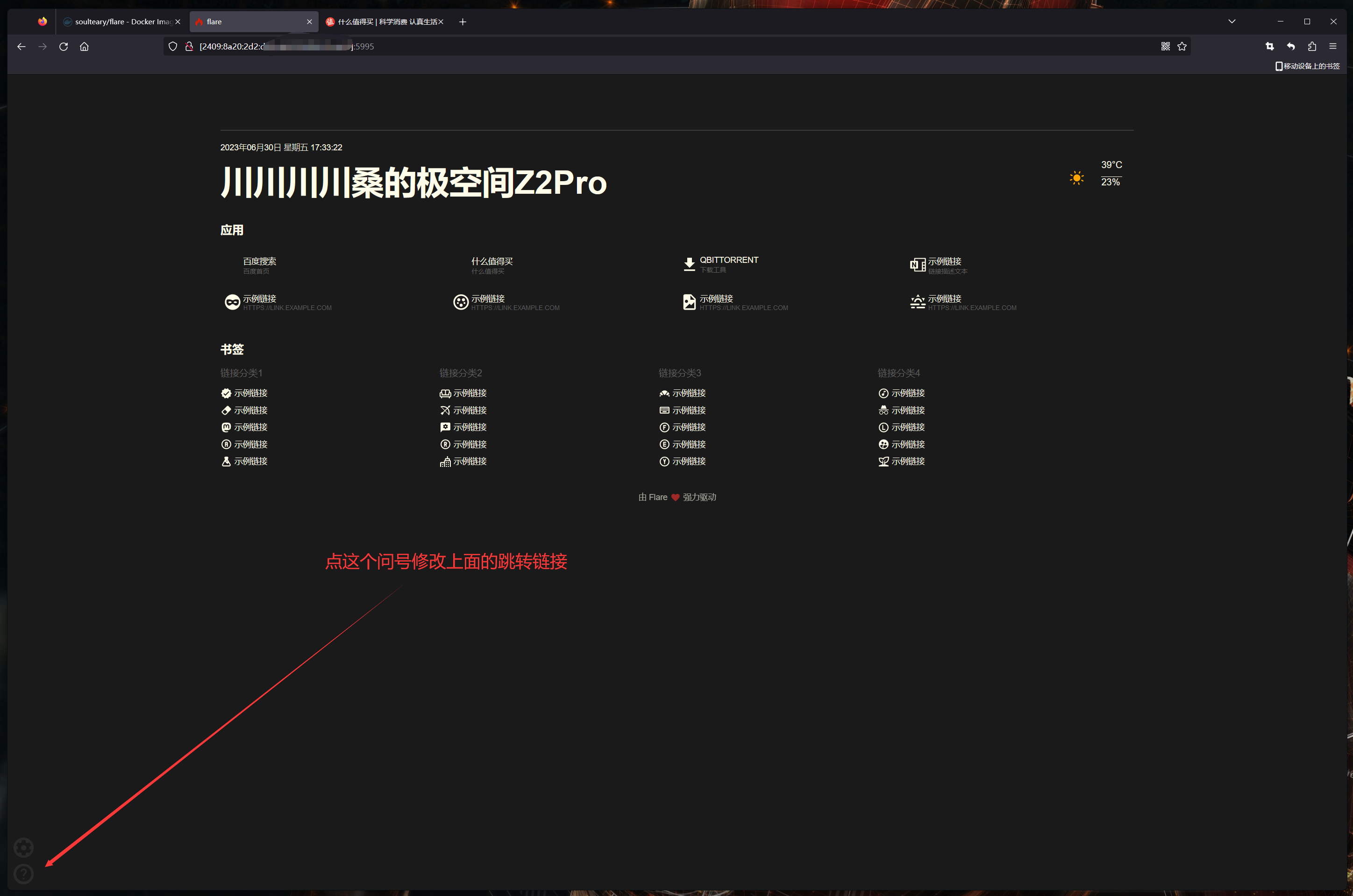 除了這些基礎信息,Flare作爲導航頁也支持自定義跳轉鏈接,修改需要點左下方的問號。