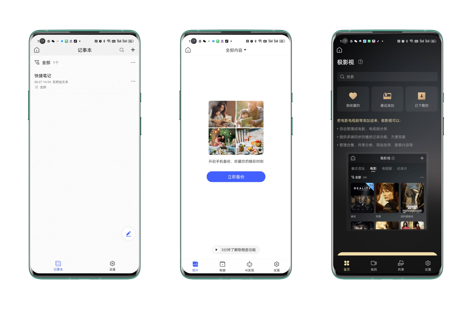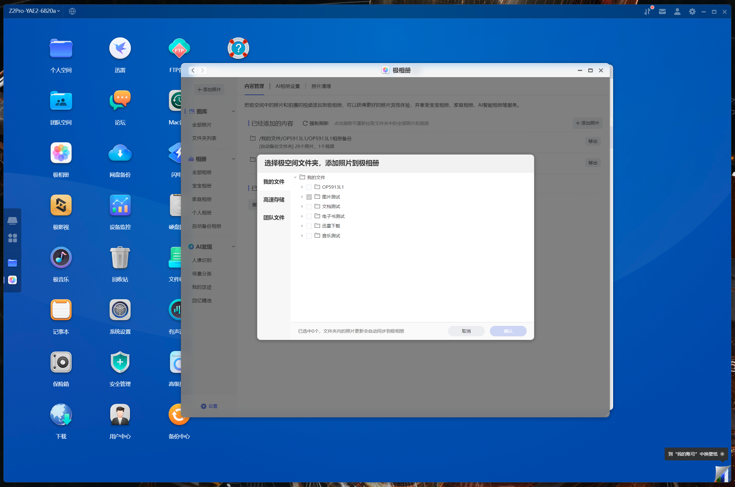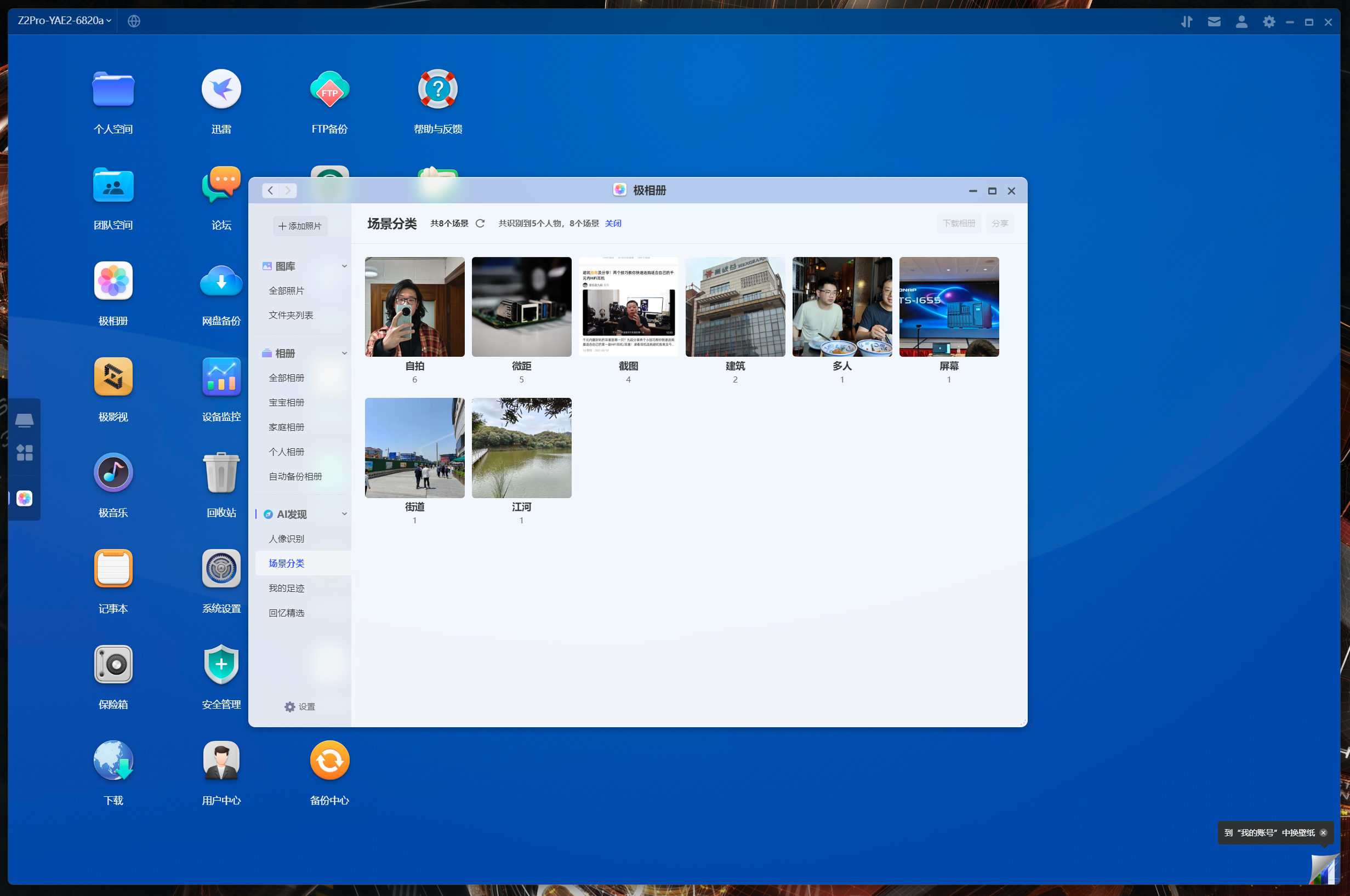 我個人推薦懶人用戶上極空間最大的原因在於各種功能套件,比如下圖中的記事本、支持AI整理分類的相片牆以及支持自動削刮影視信息的極影視,下面會詳細展示。