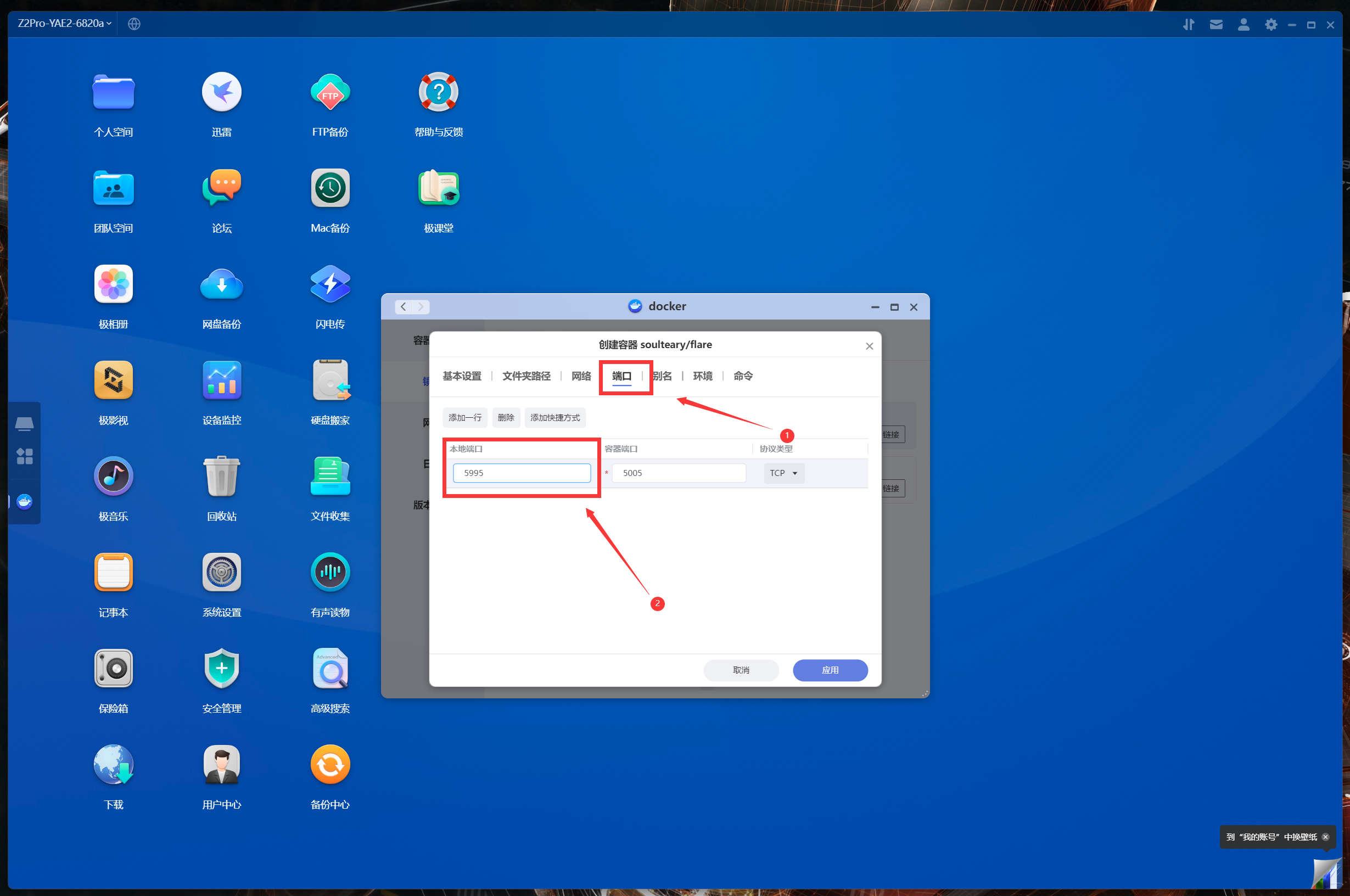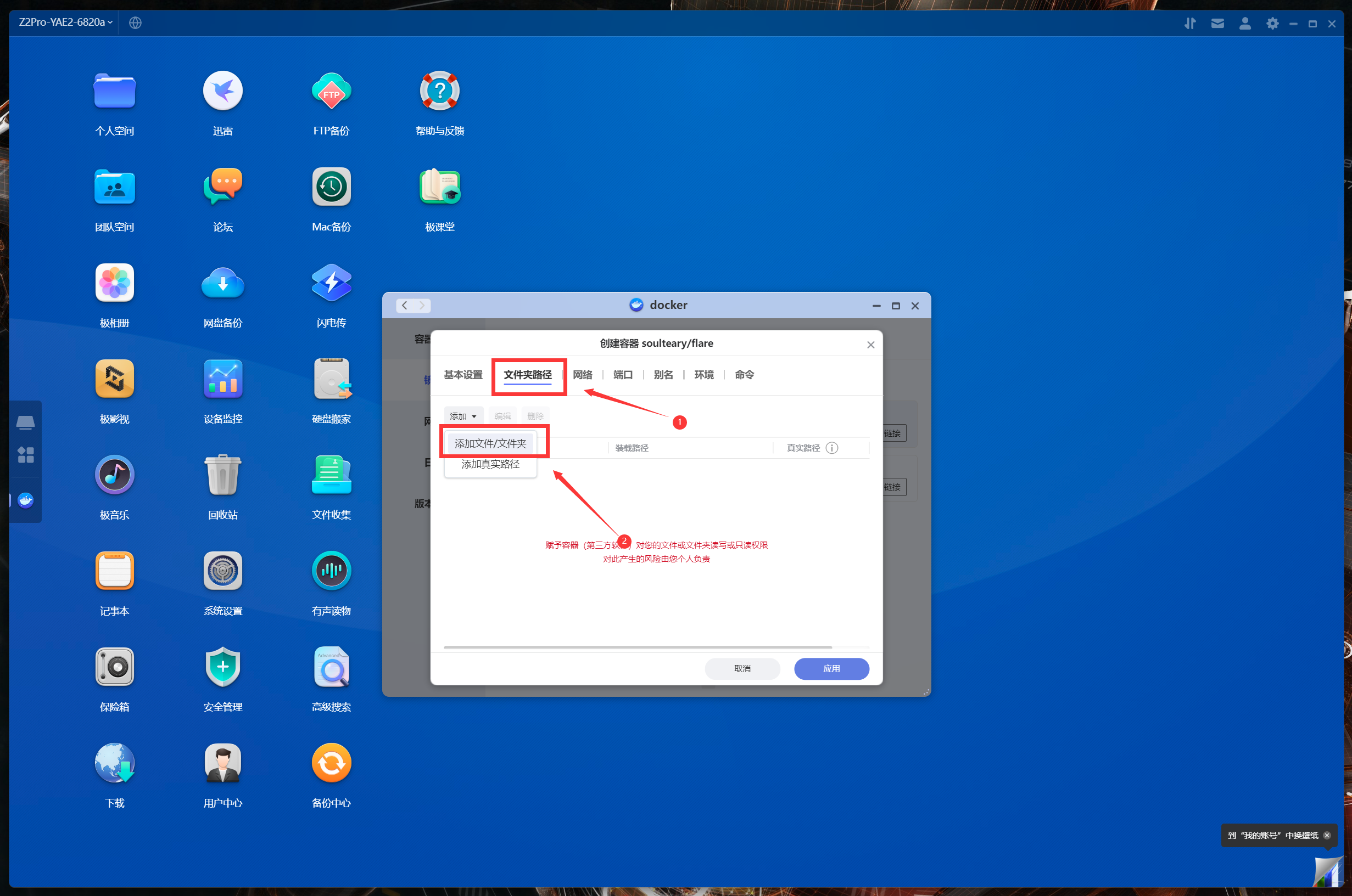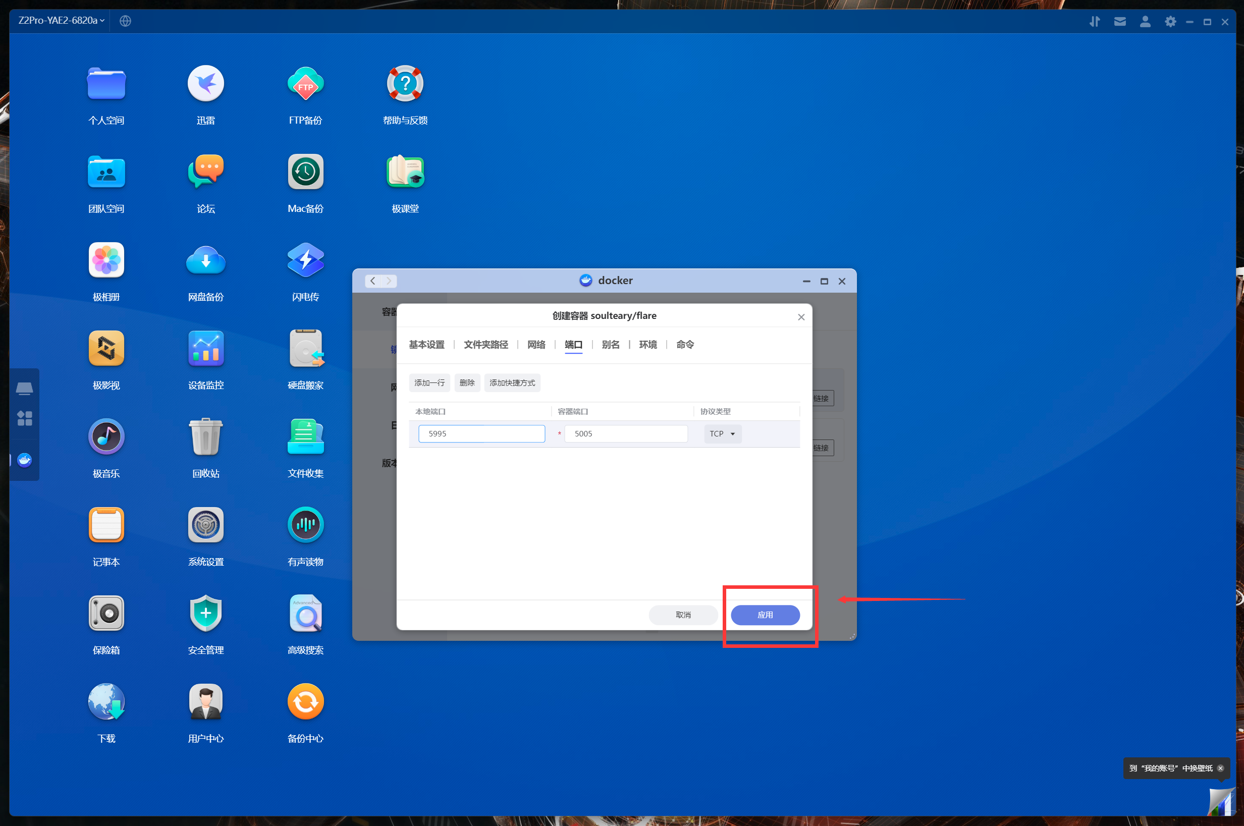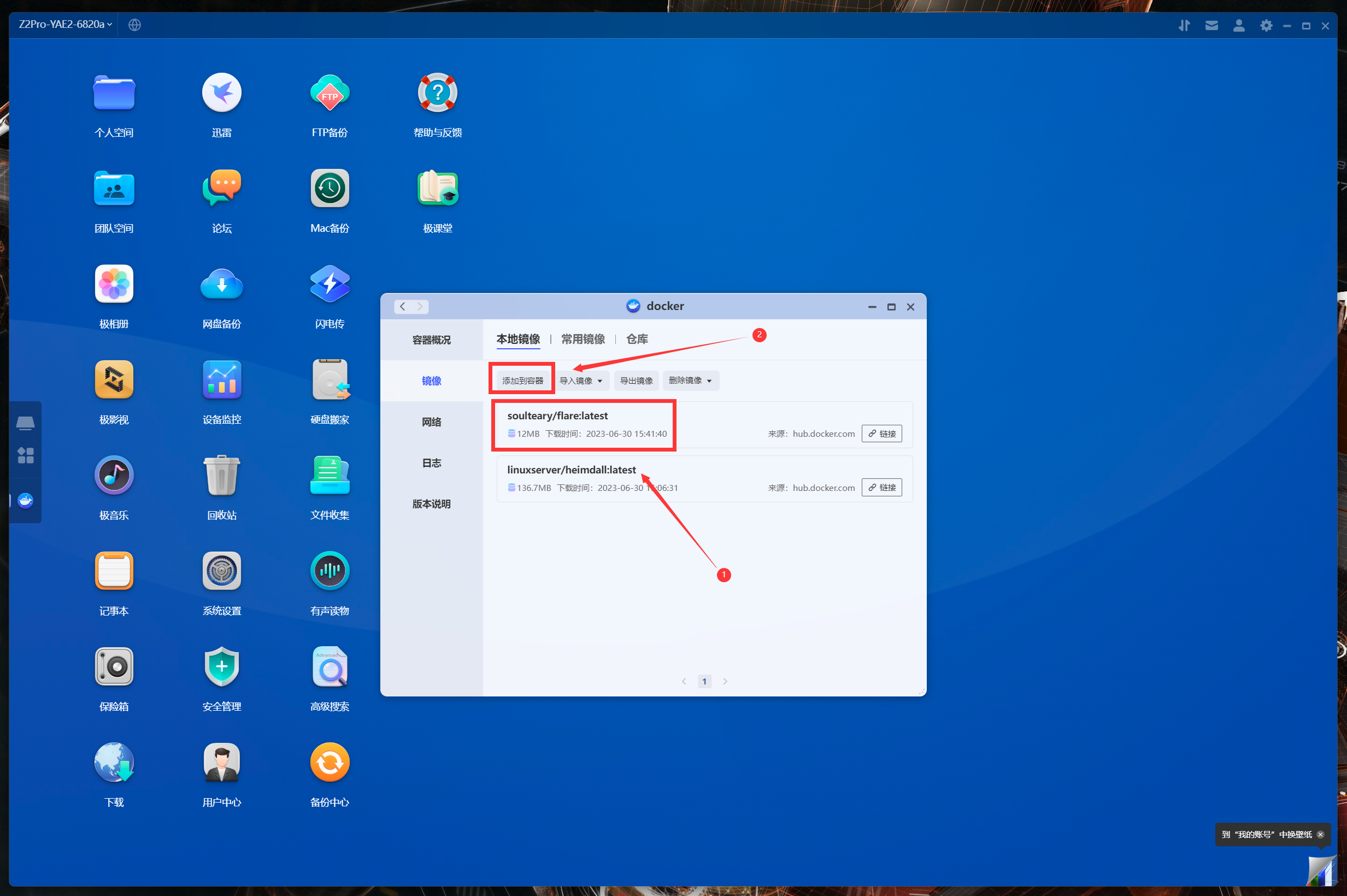 開始正式部署容器,進入極空間的Docker管理器,按照下面步驟操作: