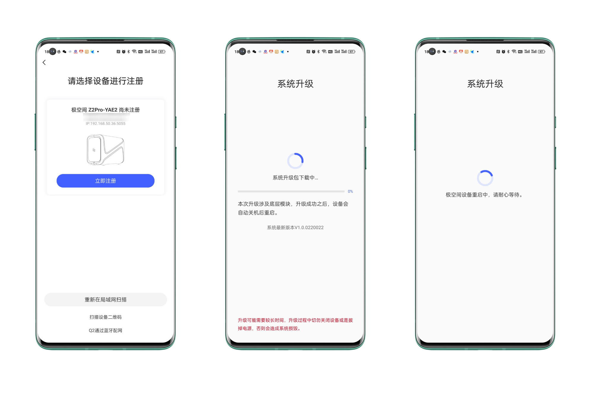 在之前的NAS廠商對比中提到過,極空間的整體使用更偏向手機移動端,所以初始化也需要手機操作,按照提示拿手機號註冊一下設備即可,期間請保持設備在線,不然會導致升級失敗。
