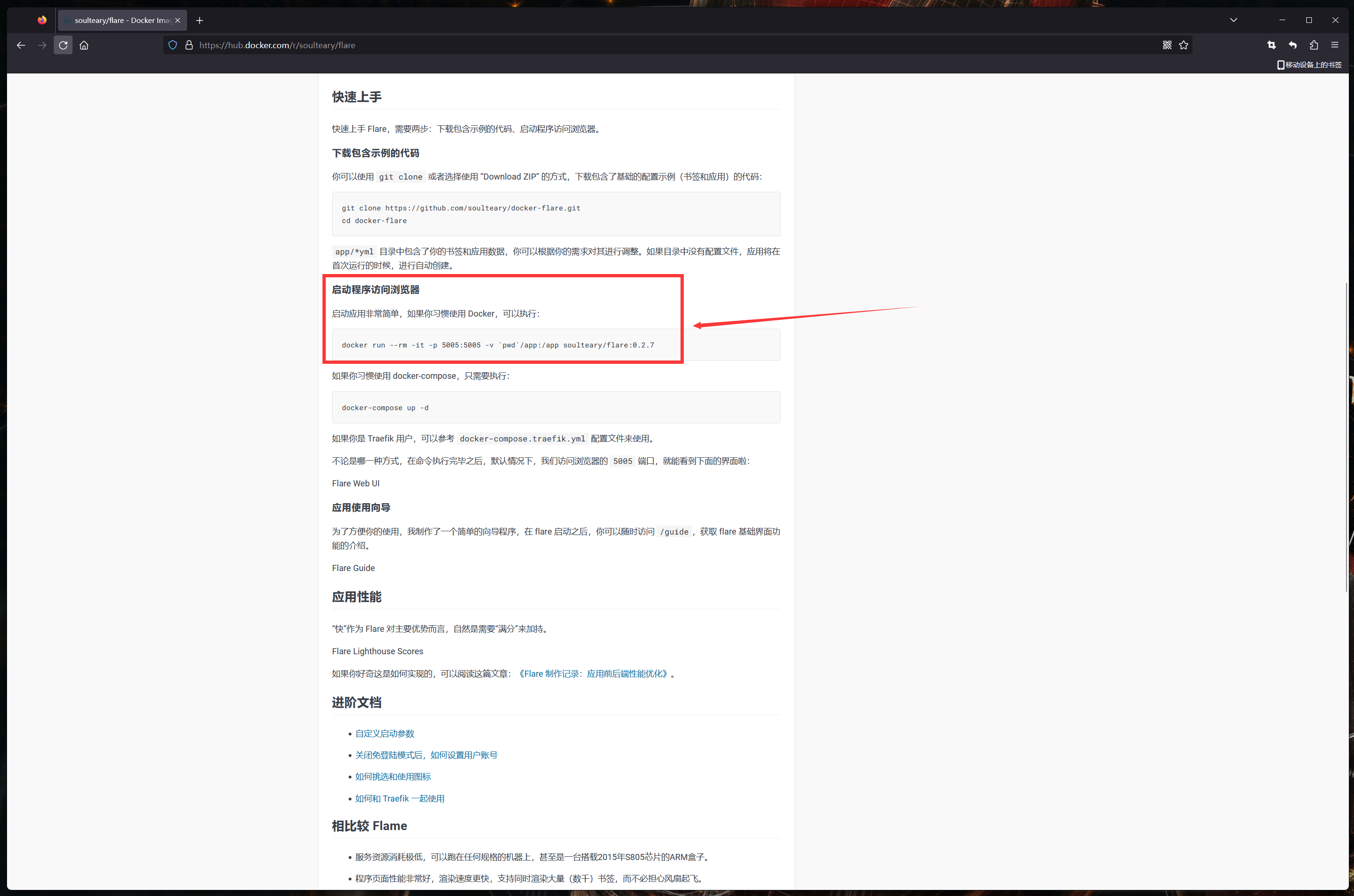 部署前先需要了解項目是否適配ARM平臺,進入flare的項目主頁,介紹說了支持ARM設備。