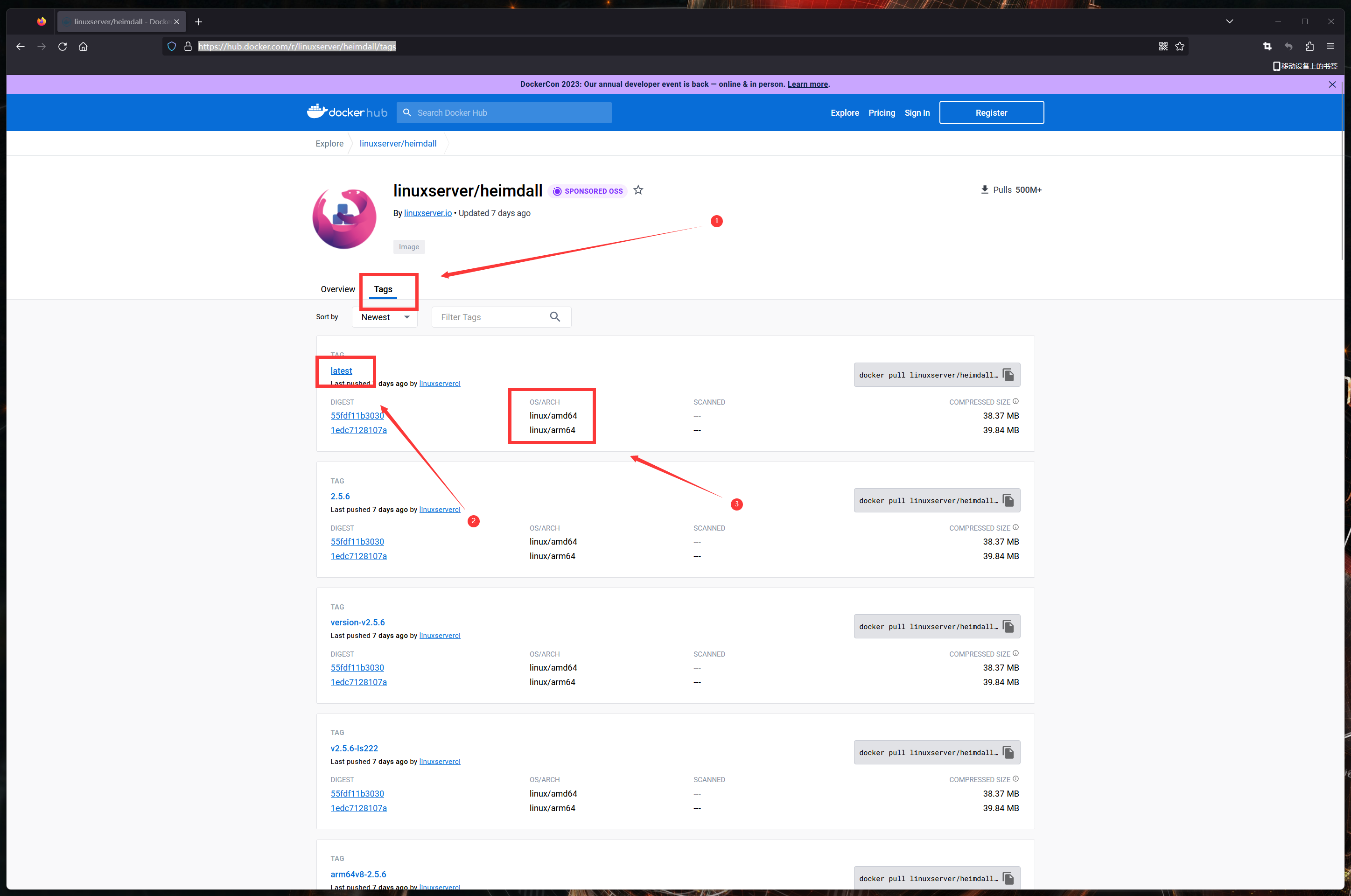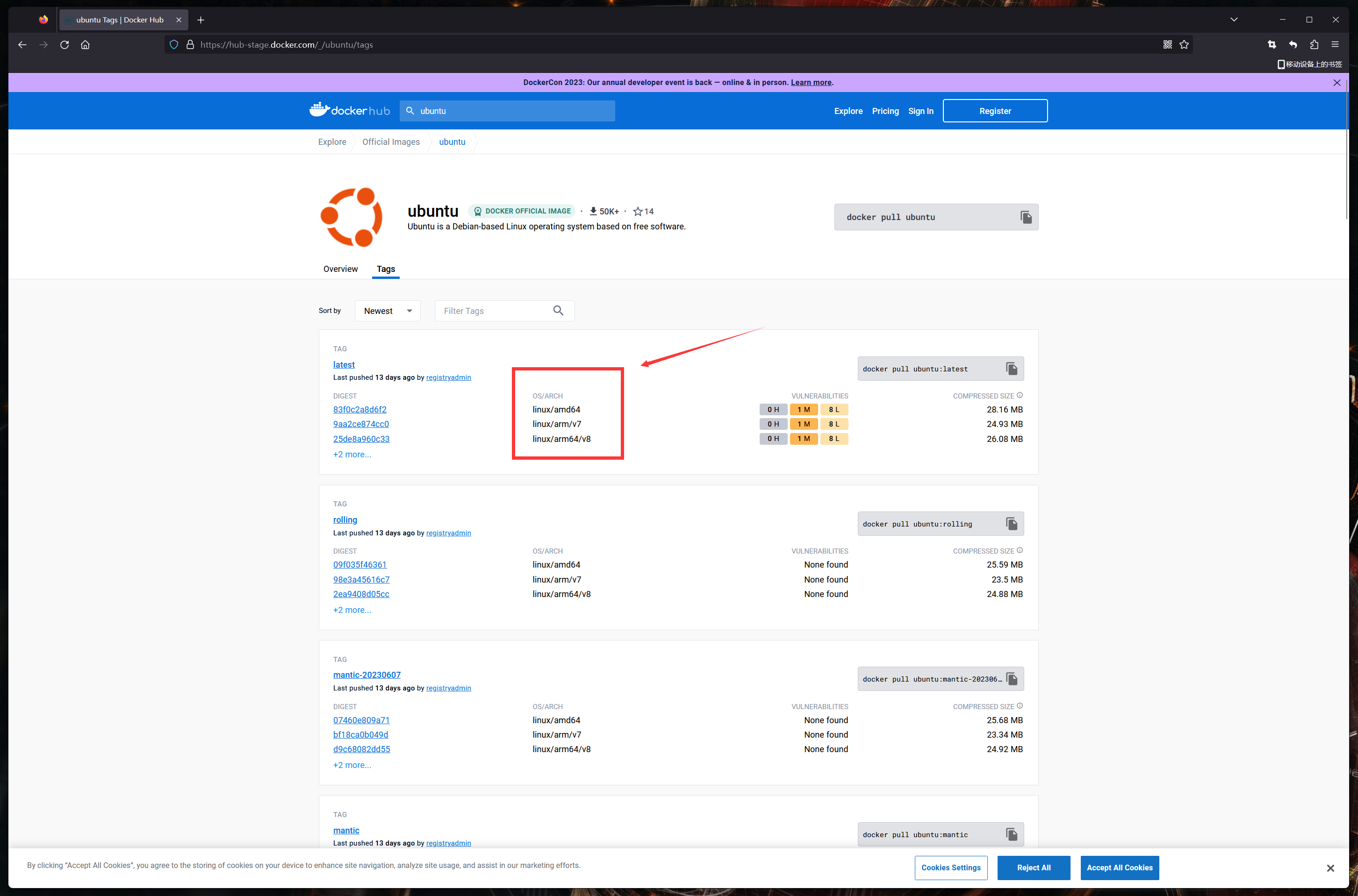 其他項目可以點擊下圖的Tags(標籤),Latest(最新)版本的OS支持amd64和arm64: