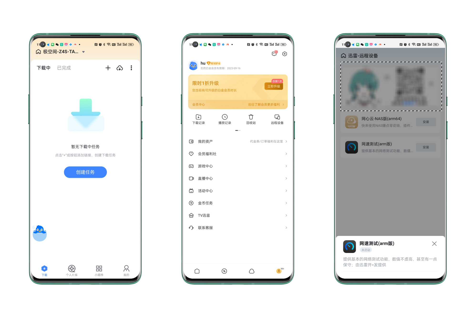 雖然是ARM版本,但極空間Z2Pro可是滿血版本迅雷,內置了ARM版本的測速工具+網心雲,除了可以在手機迅雷App和極空間桌面端管理外,極空間移動端App同樣可以操作。
