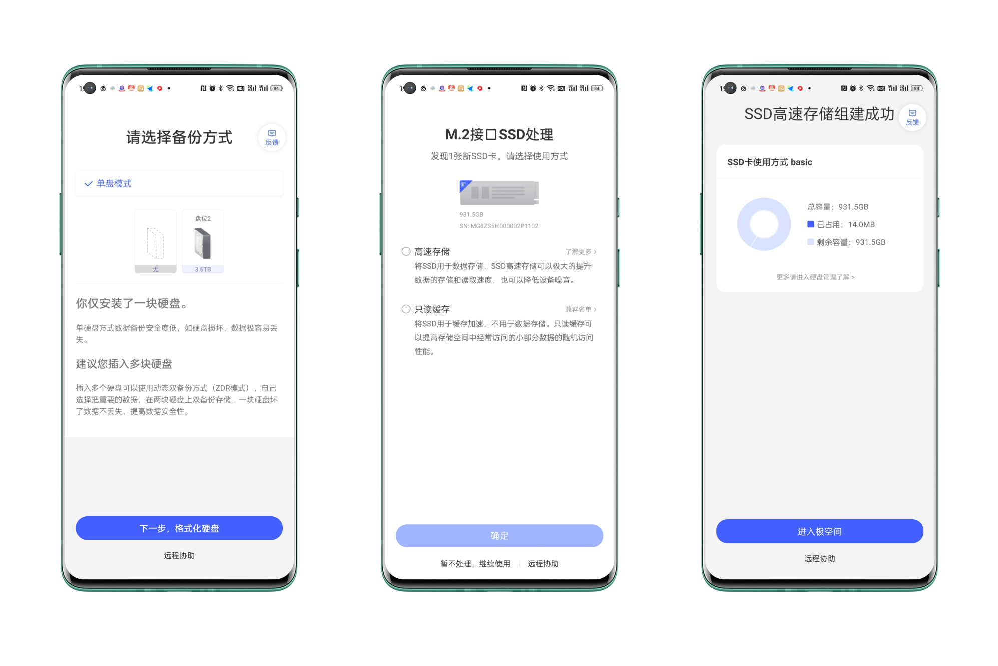 固態硬盤則支持正常存儲與加速盤兩種模式,個人建議是設置成正常存儲,加速盤對普通用戶的意義不是那麼大。