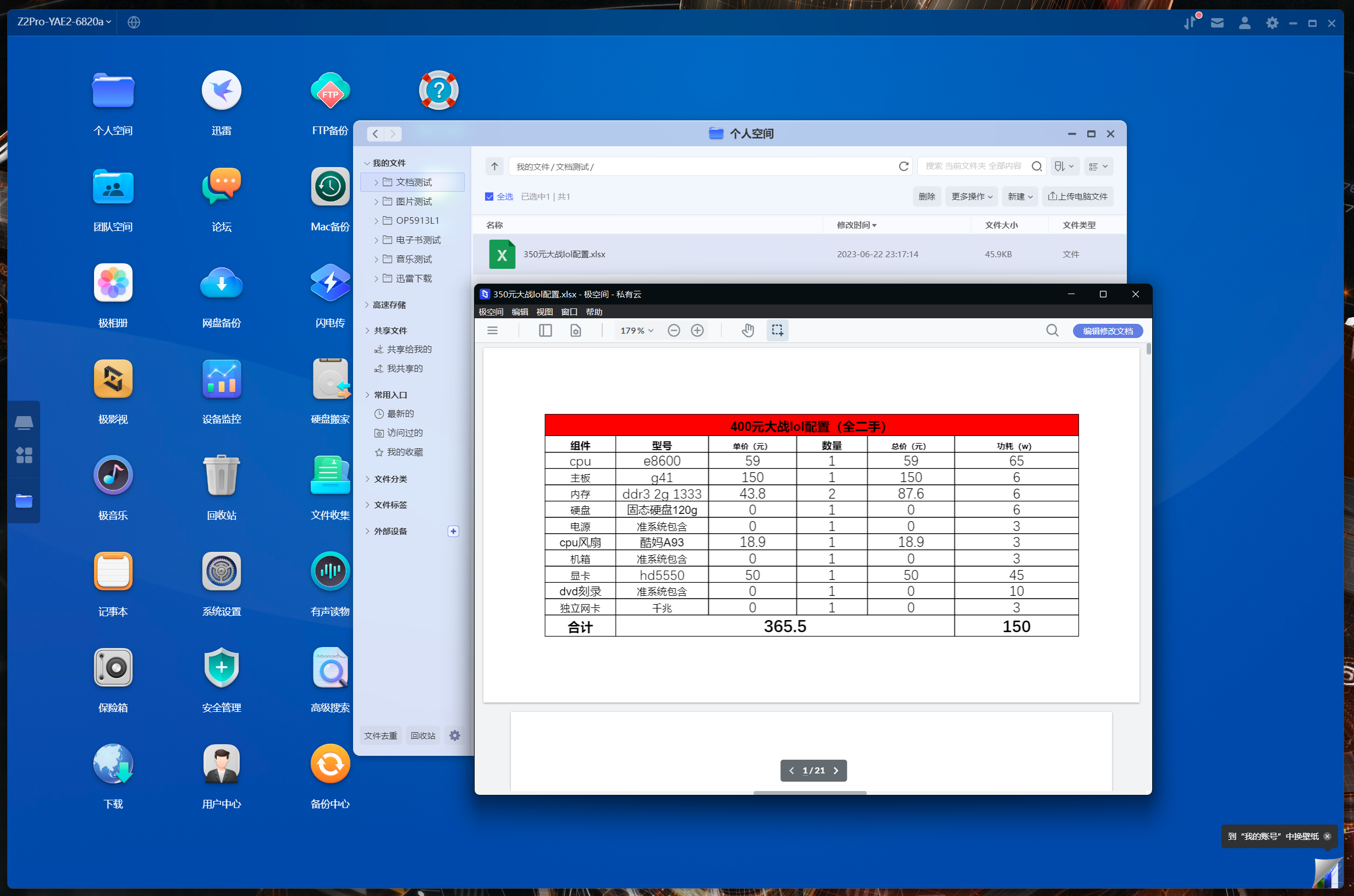 文檔管理,和其他家單獨給Office做套件不同,極空間簡化了相關操作,直接在文件管理中雙擊即可打開查看doc、xls和ppt文件,這點移動端和桌面端沒有區別。