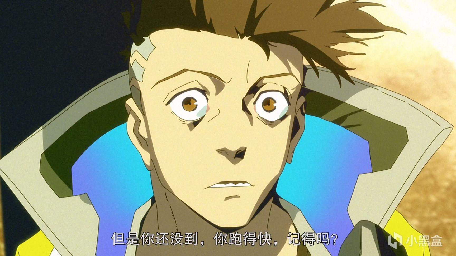 最后,我想回到动画标题,说说关于边缘行者这四个字的理解。边缘行者对应的英文叫‘Edge runner’,其实翻译成边缘跑者更合适些。edge,意为边缘,一方面可以理解成男主所做的事独立于夜之城公司主导的秩序之外,另一方面也可以理解成男主在用自己的生命走钢丝,一次又一次的义体改造都是在挑战自己身体的极限。而runner,我理解为男主在和死亡赛跑,想在死前帮Lucy完成去月球的愿望,动漫中也数次呼应了标题的“跑”,例如曼恩死的时候对David说:你跑得快,继续跑。