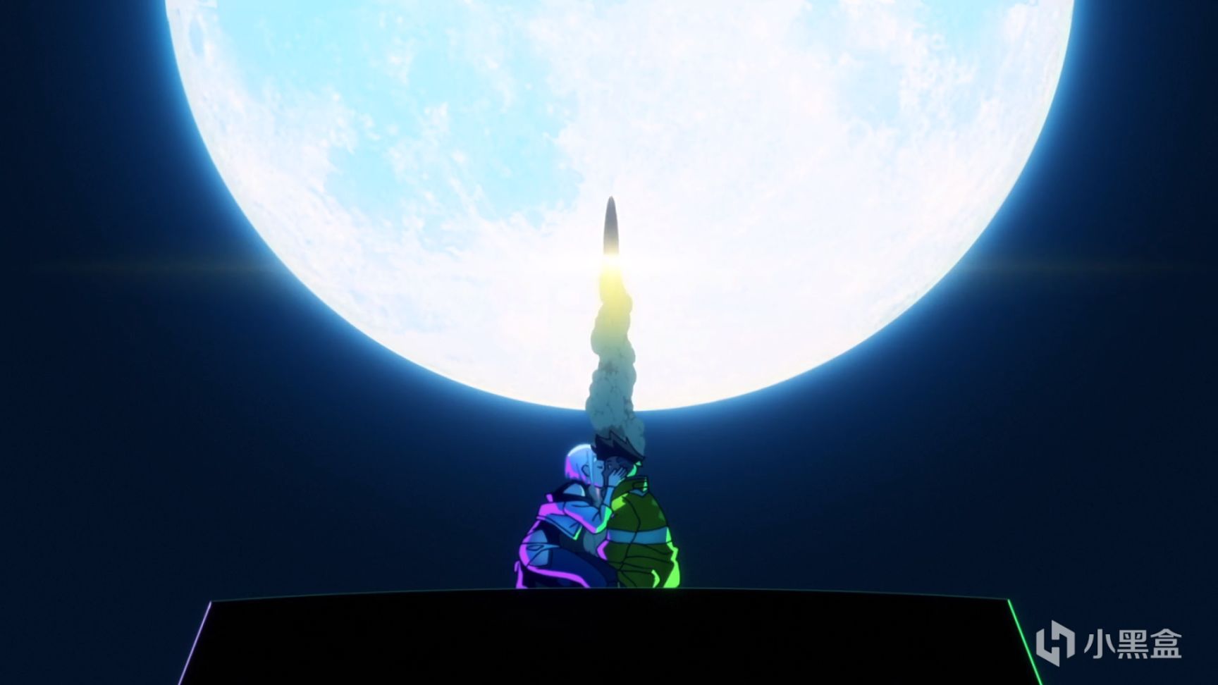 如果没有了月下拥吻和去月球的剧情,那么剩下的不过是赛博朋克高科技时代下底层人民黑暗生活的写照。真正让故事升华的是女主Lucy这个一开始可望不可及的梦想,在夜之城的大背景下是那么浪漫,宛如黑夜中的一缕微光,照亮了整个故事压抑的基调。第十话的标题叫作‘My moon, my man’, 搭配David和Lucy月下的拥吻,当这首歌再次响起,同样轻快的旋律,这次却已是生离死别的关头,一瞬间直击人内心深处,让人不由得动容。