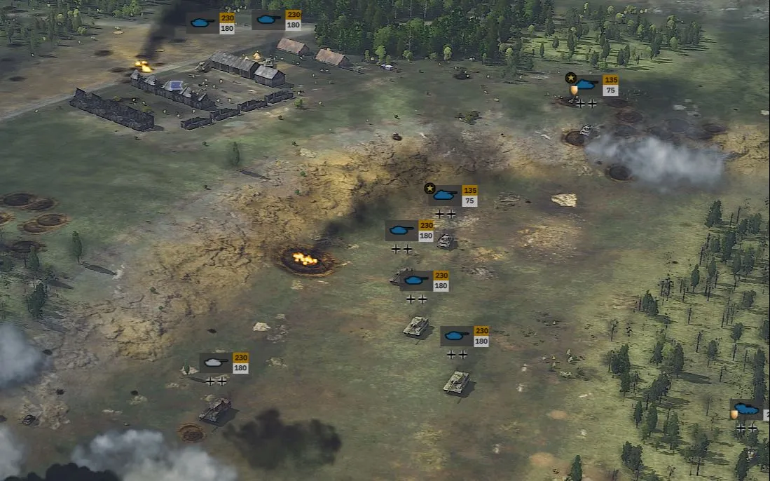 游戏的操作相比友商的作品,微操成分更多一定,除去经典的机枪阵地迁移五十米,玩家还可以对单元的装弹和武器使用进行调节。比如我反坦克的小班组,其它轻重武器全关,就拿着给筒子开禁火钻小树林蹲你坦克。操作一多玩起来会比较累,但TMD是真爽,二战大战场推线独此一家。游戏还有专门的将军模式,让玩家亲自指挥历史上大规模会战的经典战役(这个模式是真的杀时间)。