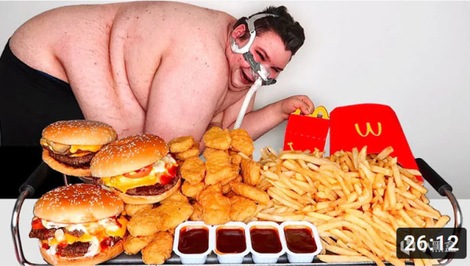 在油管,这位故意颤抖自己身上的所有肥肉,挤眉弄眼堆出假惺惺笑容的美国肥仔,一直是油管的“吃播之王”。