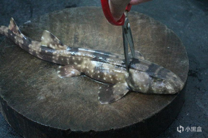 她从京东上购买了一只“人工养殖可食用”的鲨鱼,并把它拉到家附近的海鲜店门口,并开始烹煮和烧烤鲨鱼,最后大快朵颐。