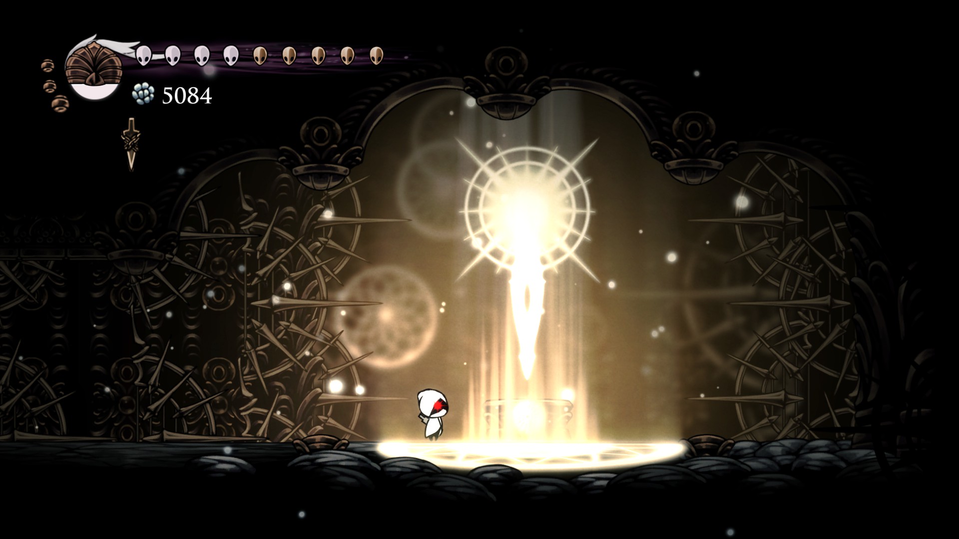 神居中屹立着纯粹容器的雕像,那也是空洞骑士的完全形态。