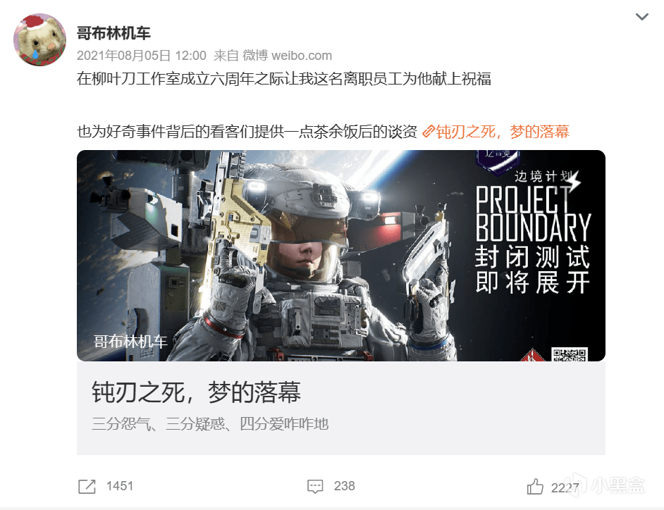2021年8月5日,哥布林机车在微博上发布了文章《钝刃之死,梦的落幕》,文章直接写出了柳叶刀的内部问题。文章被转载到各个知名的社区平台