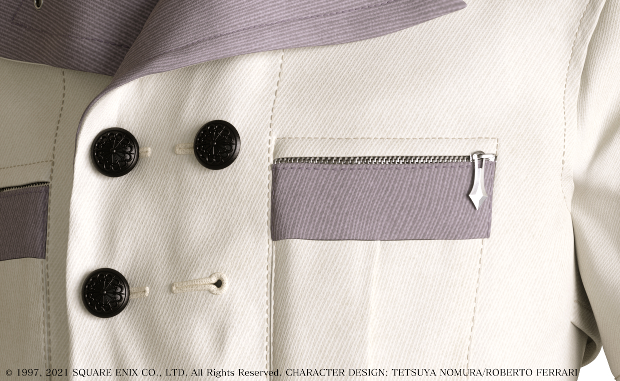 卢法斯穿着的双层西装既奢华又优雅,胸口和腰间的口袋拉链都设计成了剑尖的样子。